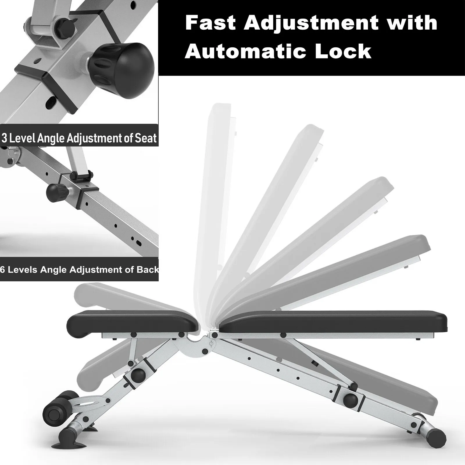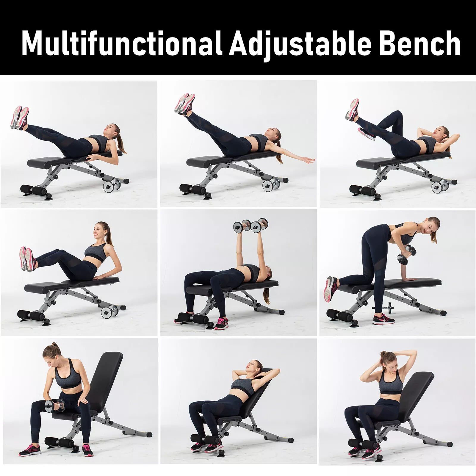 COOLBABY YLJSD Adjustable Weight Bench, Full Body Workout Strength Training Bench Press Foldable Incline Decline Bench Sit Up Exercise Equipment for Home Gym