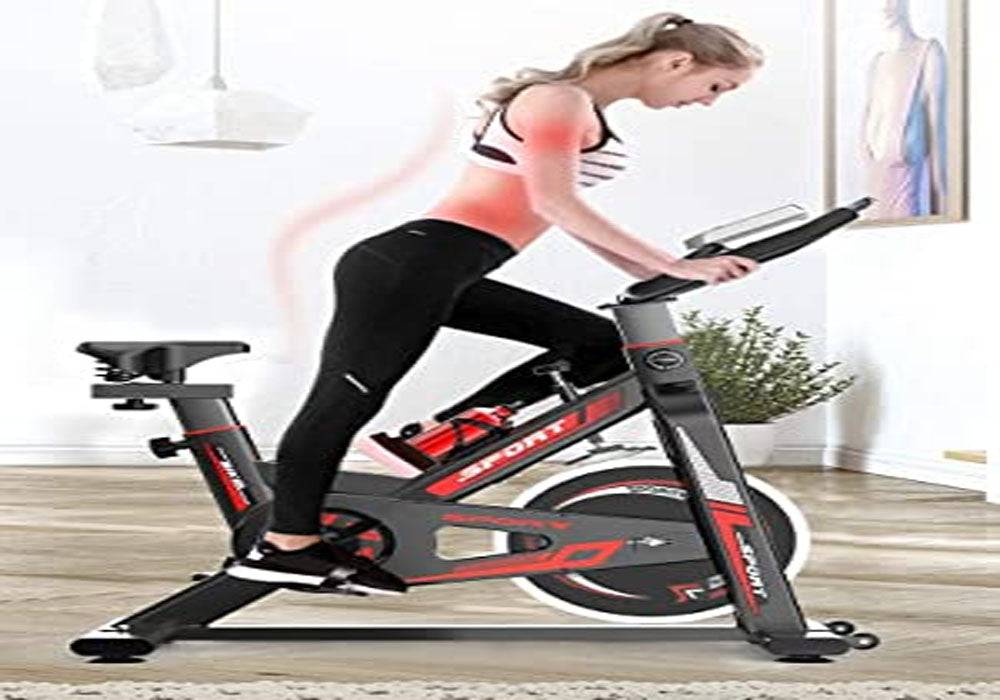 Indoor Cycling Bike with Smooth Belt Drive and 40-pound Flywheel: This consumer- and commercial-standard exercise bike offers a convenient and effective workout at home. The LCD display and heart rate monitoring keep you informed about your progress, and the adjustable height makes it suitable for the whole family. The sturdy crank and steel frame ensure durability and stability.