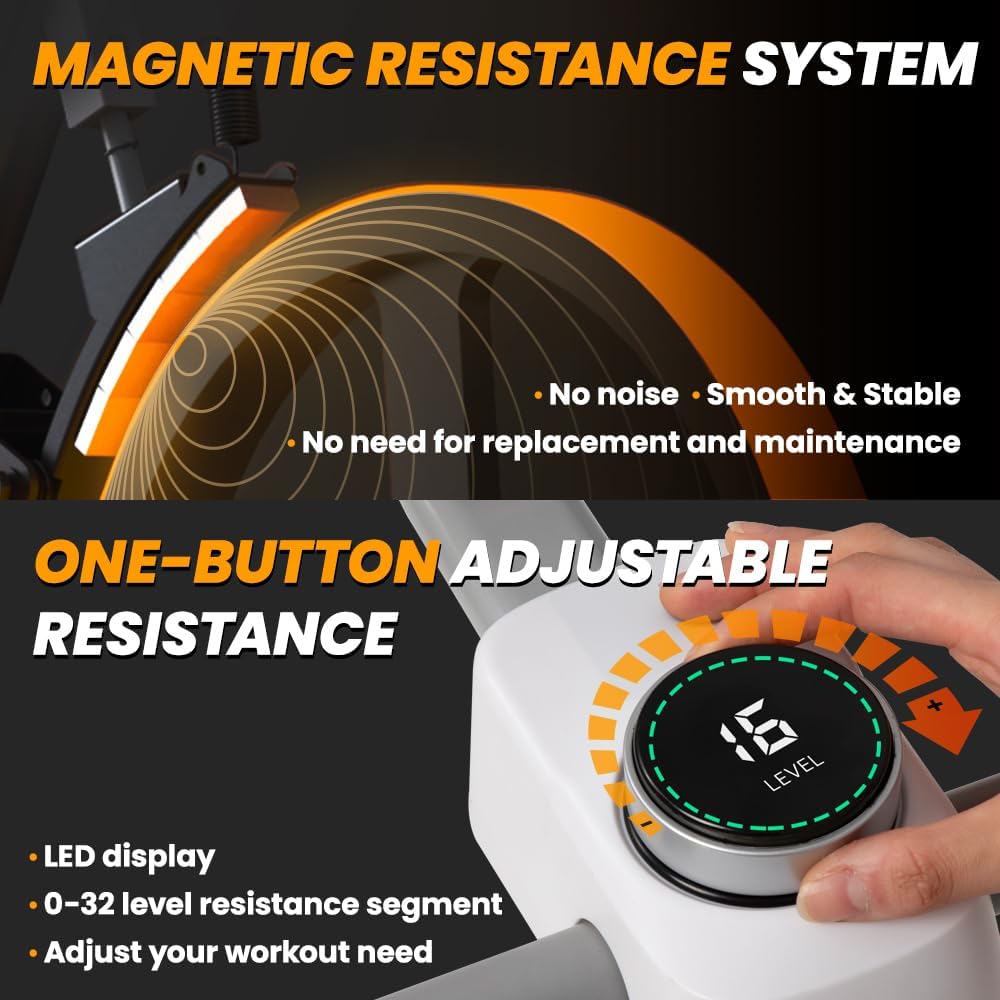 - Infinitely Variable Contril:Unlimited micro-adjustable magnetic resistance allows for different sports modes that ensures the needs of diverse riders are fully met. More interesting & scientific riding, you deserve it! (Tension Level: 32 levels adjustable,Flywheel Weight: 6kgs, 2-Way)