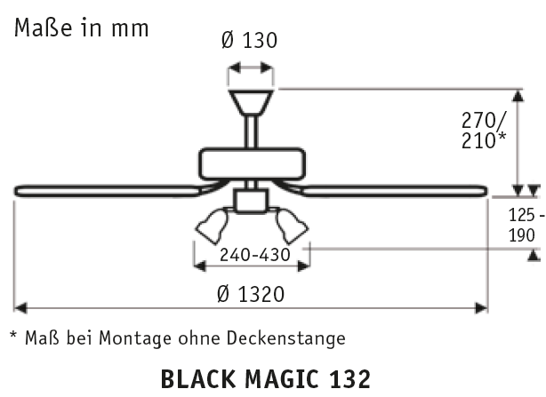 - Distance from Ceiling: 280 mm with pole / 210 mm without pole