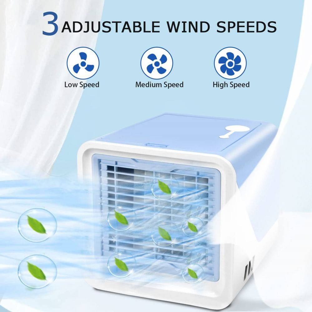 3 Wind Speed & Oscillation: Adjustable wind speeds and oscillation for personalized comfort; recommended to add ice cubes for an enhanced cooling experience.