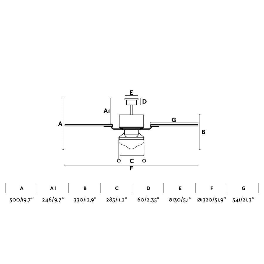 - Control: Operated by pull chain with 3 dimmable speeds (85/135/185 RPM corresponding to 14-29-58 W)
