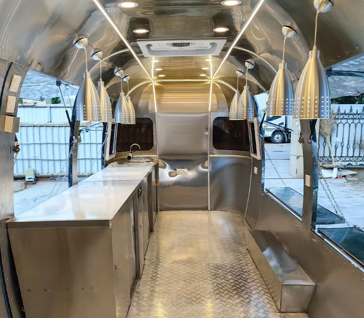 Non-Slip Flooring: The floor is made from a non-slip aluminum plate, enhancing safety for staff during busy service hours.