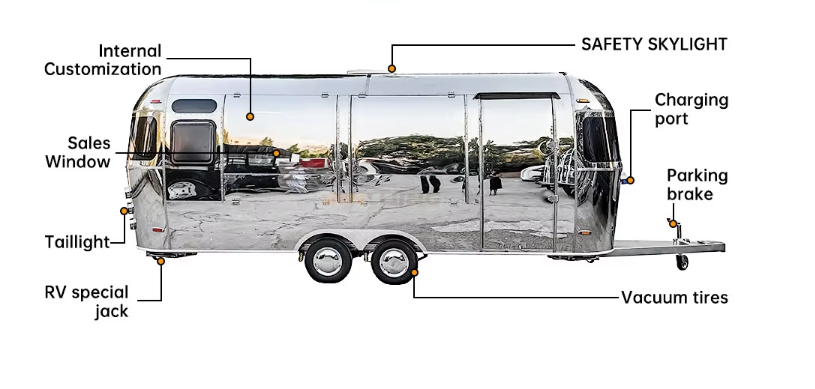 Versatile Mobile Kitchen: This 5-meter coffee trailer is perfect for various applications, including BBQ, pizza, ice cream, and fast food services, making it an ideal choice for food and beverage businesses.