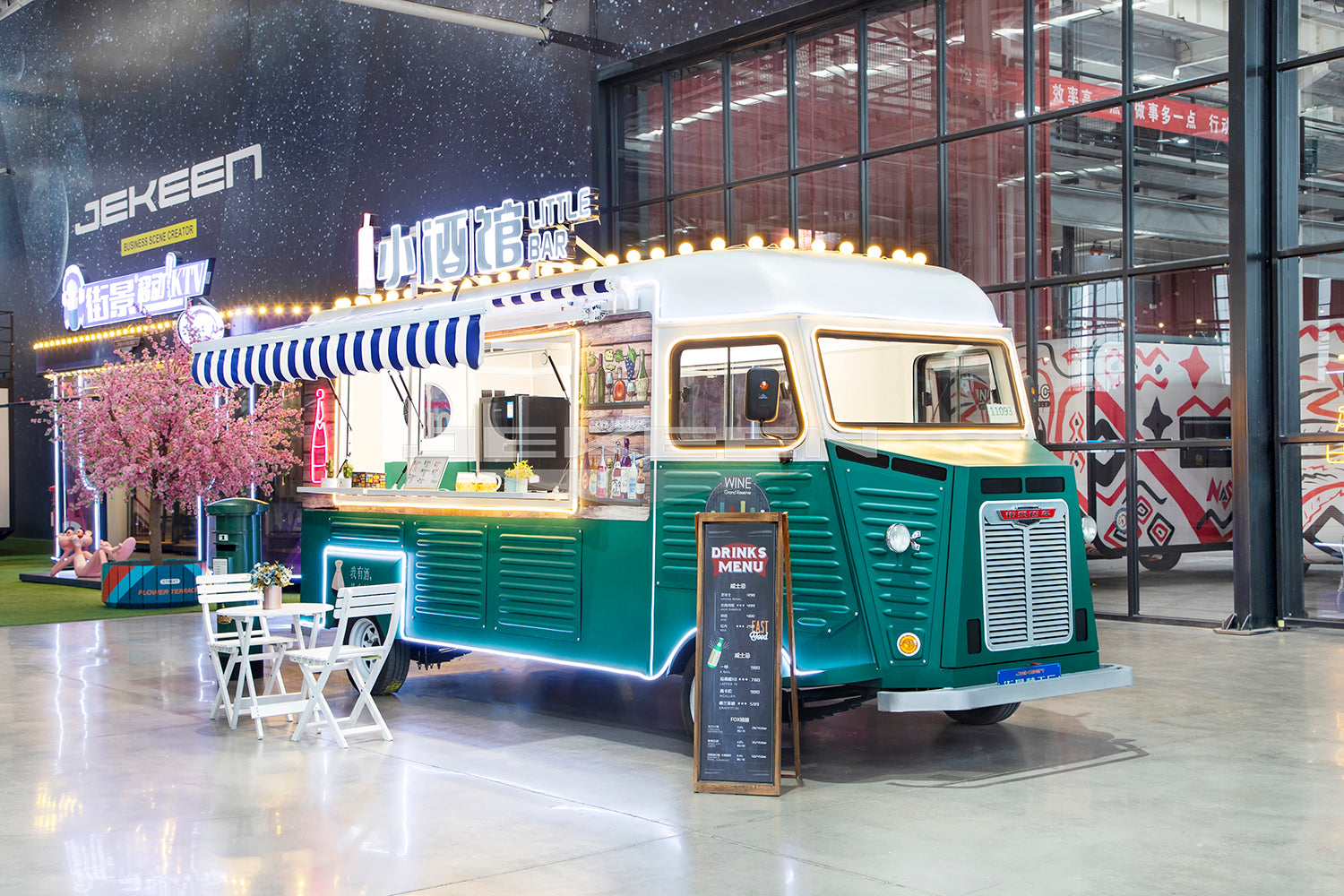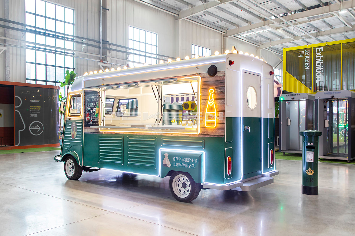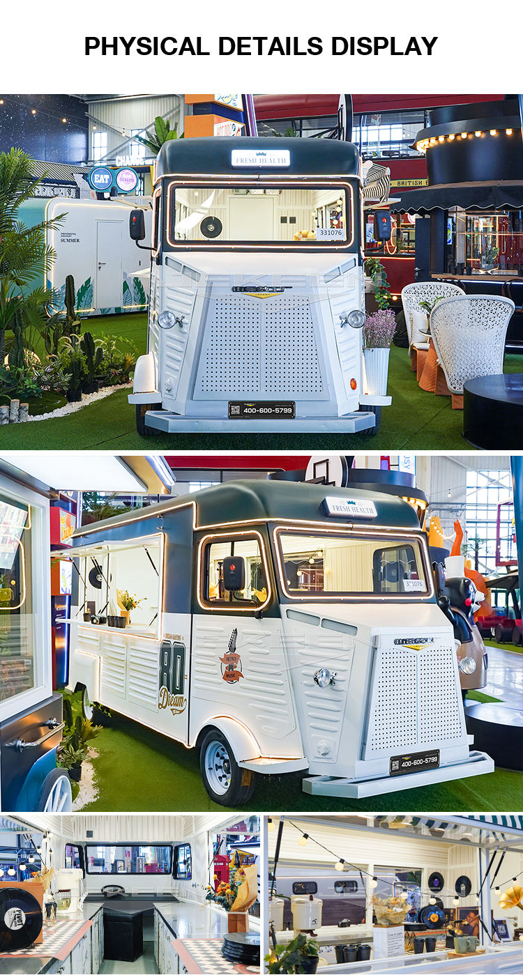 awning, Integral stainless steel cabinet, Multi-layer shelves, Freezer, Varied cooking equipment, Air conditioner, electric swivel/Sink.