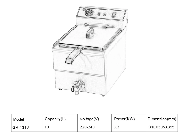 - Capacity: 13 liters, providing ample space for frying large quantities of food, making it suitable for busy restaurant environments.