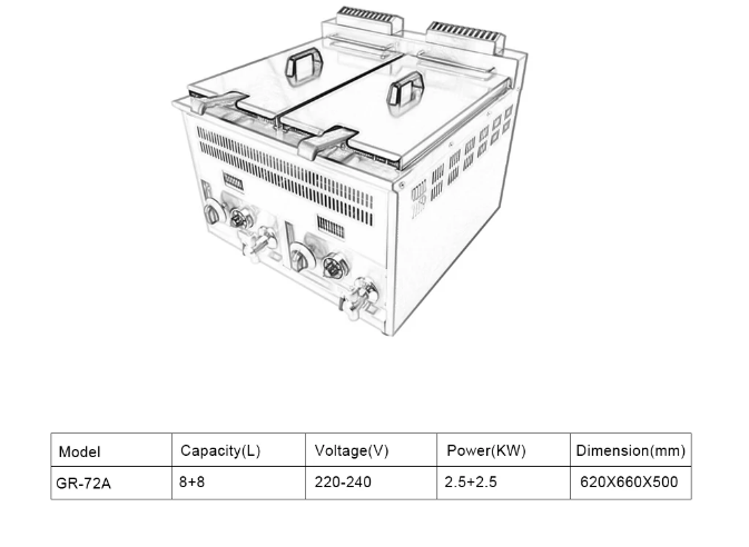 Applications: Ideal for commercial settings such as restaurants, fast food outlets, snack bars, and catering services that require high-capacity, versatile frying capabilities.
