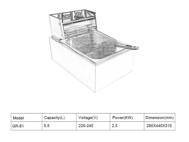 - Heating Element: Features a powerful electric heating element for fast and efficient heating of oil.
