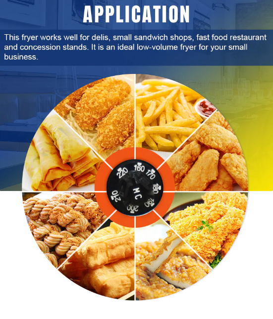 Applications: Suitable for commercial settings such as restaurants, cafes, snack bars, and catering services that require a reliable and efficient fryer for medium to large batches of fried foods.