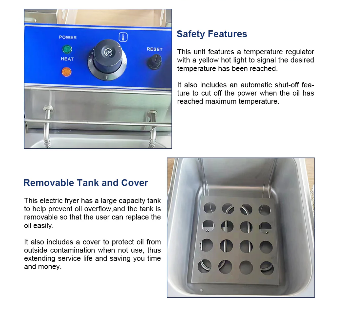 Heating Indicator Lights: Indicator lights display when the fryer is heating and when it has reached the desired temperature, ensuring ease of use.