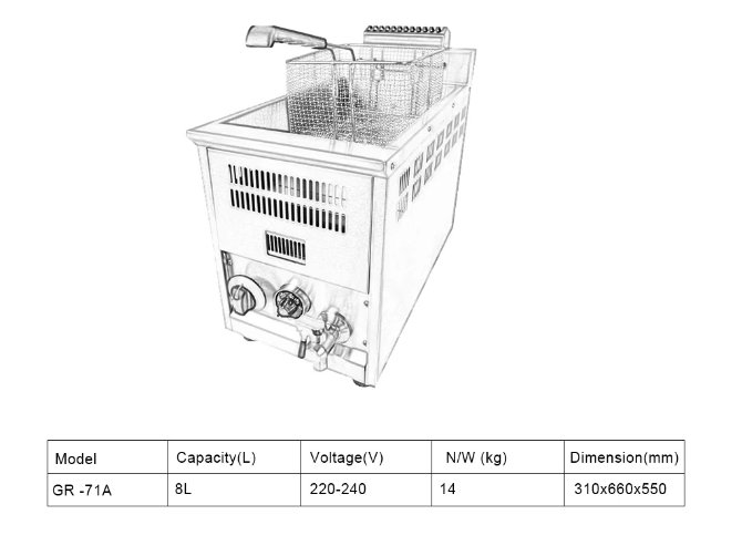 - Capacity: 8 liters, ideal for high-volume frying needs in a fast food setting.