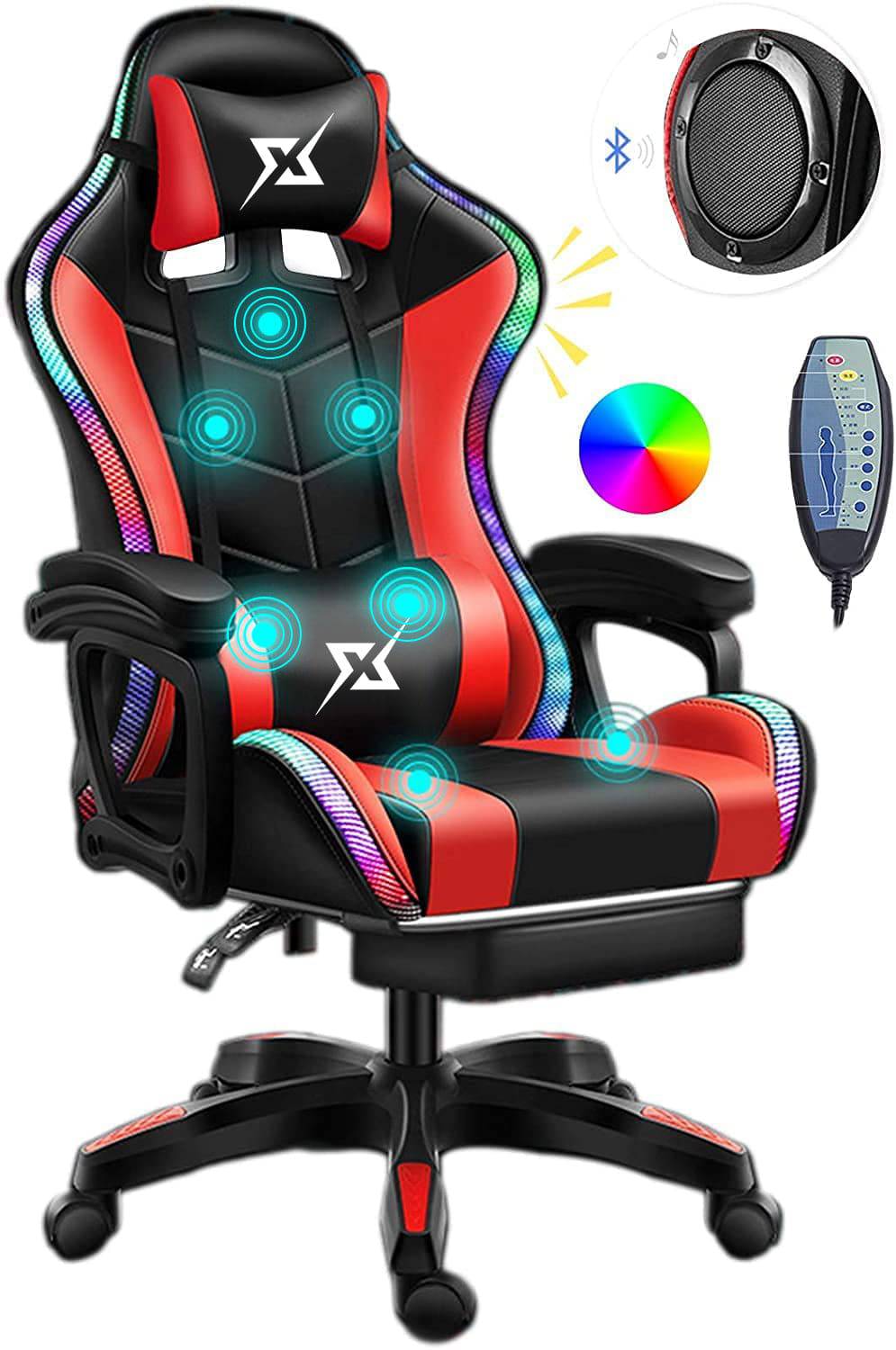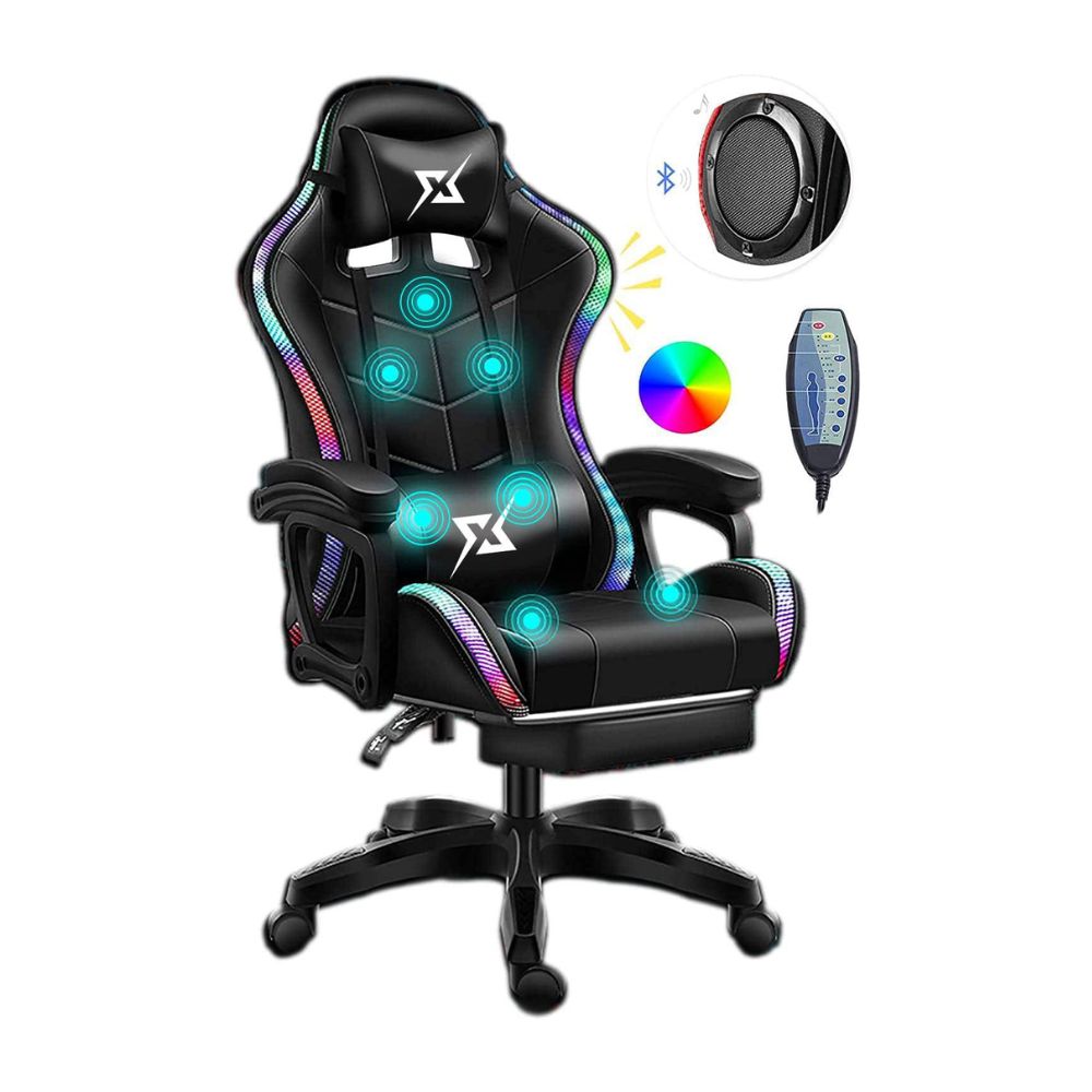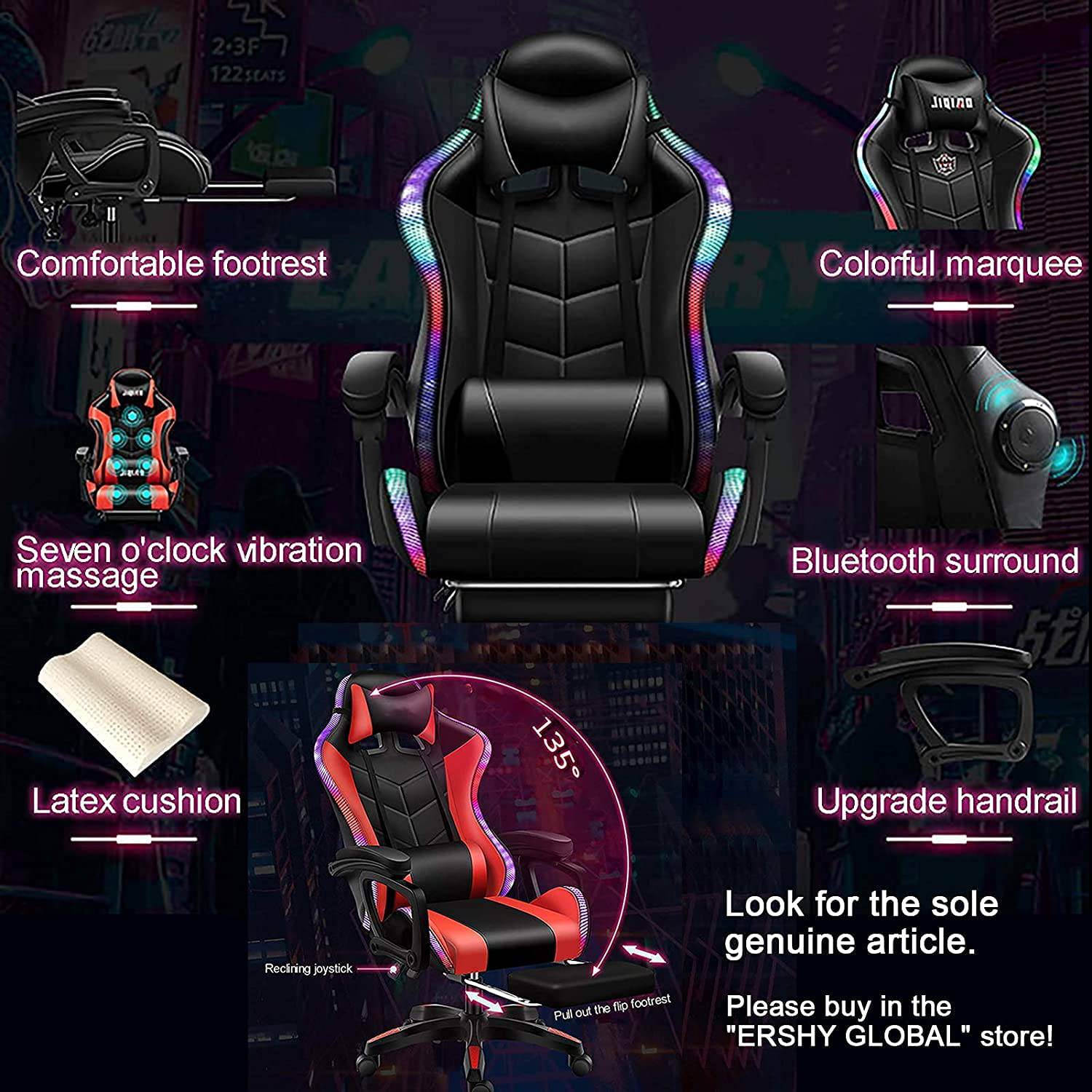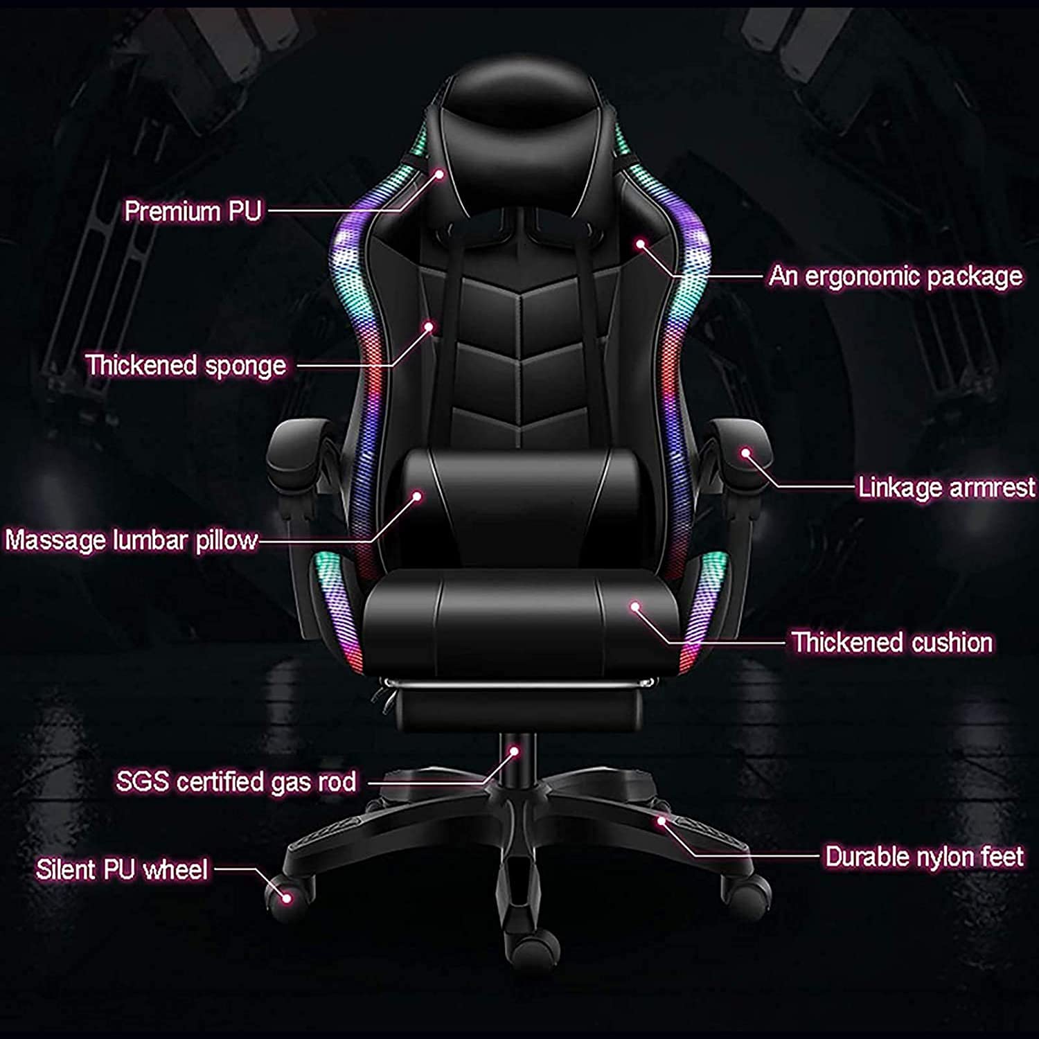Multi-Functional Design: Game chair with footrest, featuring a comfortable and ergonomic design, colorful light bar, 360-degree rotation, adjustable height, retractable footrest, adjustable headrest, and angle adjustment. Ideal for both office work and gaming, it enhances comfort and efficiency.