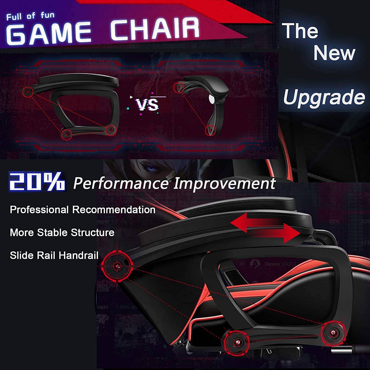 Premium Material: high-quality PU leather wrap, breathable latex sponge, thicker high-density sponge for enhanced cushioning, and a wide backrest for better support. The latest slide rail armrest design has three fixed points for stronger support.