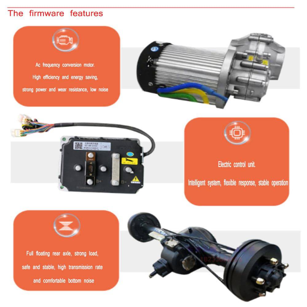 - Rear Axle and Suspension: Integral Rear Axle + High Strength Leaf Spring + Cylinder Hydraulic Shock Absorption