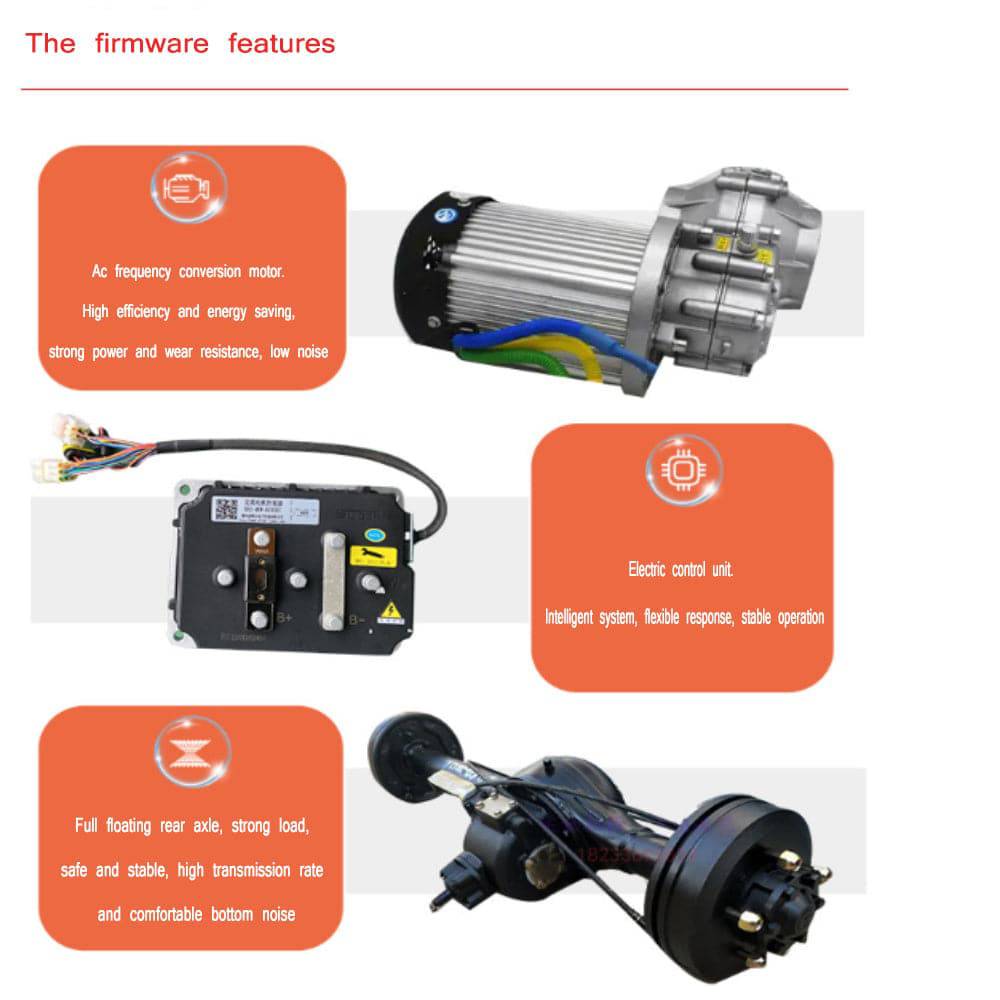 - Rear Axle and Suspension: Integral rear axle + high strength leaf spring + cylinder hydraulic shock absorption
