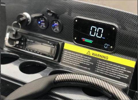 - Dashboard: Includes battery meter, Bluetooth MP3 player, USB charger sockets, and switches