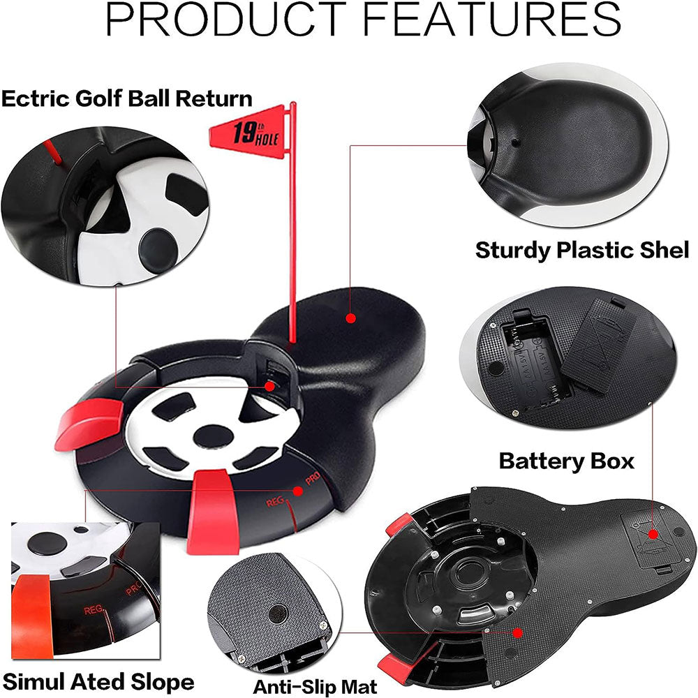 - Automatic Ball Return: This Golf Automatic Putting Cup Can Speed Up Your Practice Of Putting. Simply Set Up Your Shot, Hit It In The Hole And Keep Practicing Without Interruption.