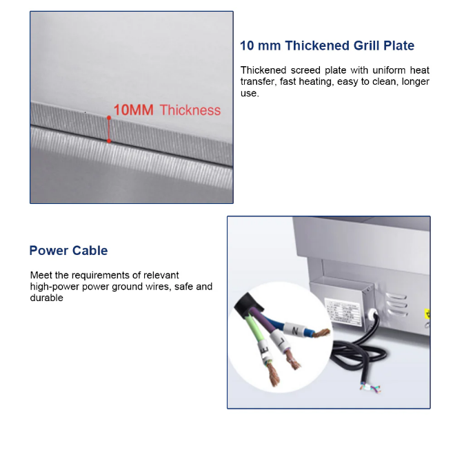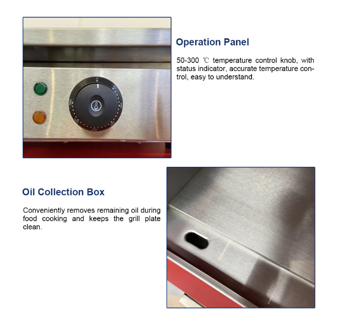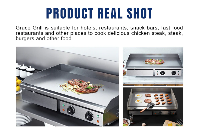 - Ease of Cleaning: Designed with a non-stick griddle surface and removable grease trays or drip pans to facilitate easy cleaning and maintenance, reducing the time and effort required to keep the machine in good condition.