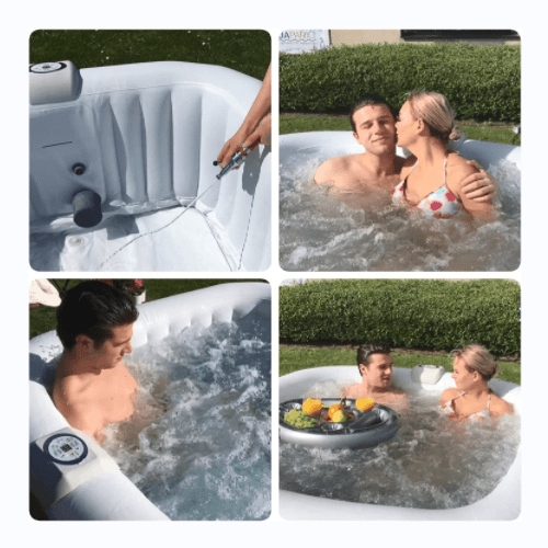 - Simple setup and maintenance: no extra tools are needed to setup This portable spa. Simply inflate and deflate with the spa's own pump! A cover comes with to provide safety, maintain the water's warm temperature, and keeps the water Clean from rain or Leaves.