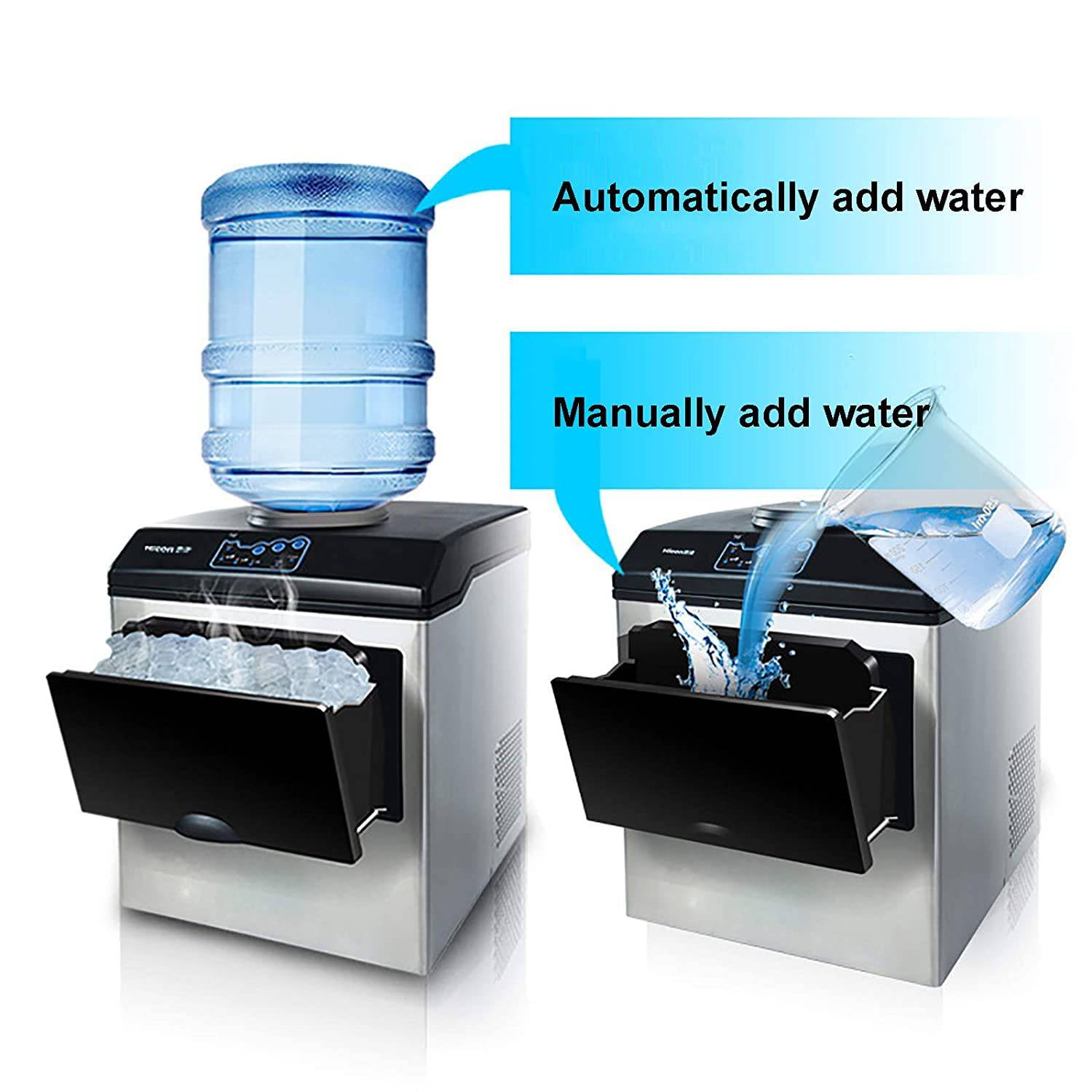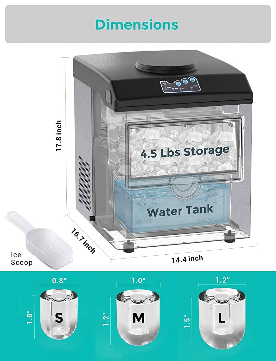 Easy Button Control: Simple button control panel allows you to turn on the ice maker and choose from small, medium, and large ice sizes. Water-shortage and ice-full indicators help conserve energy and reduce electric bills.