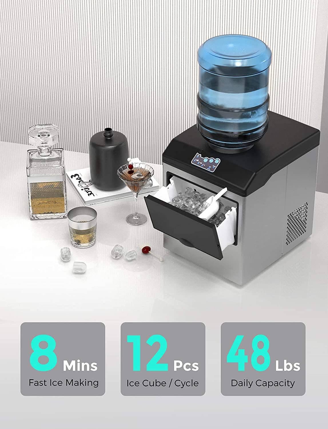 Generous Ice Production: Rapid 6-12 minute ice-making cycle delivers a generous 48 LBS of fresh ice cubes daily. The detachable 5 LBS ice basket ensures ample ice storage.