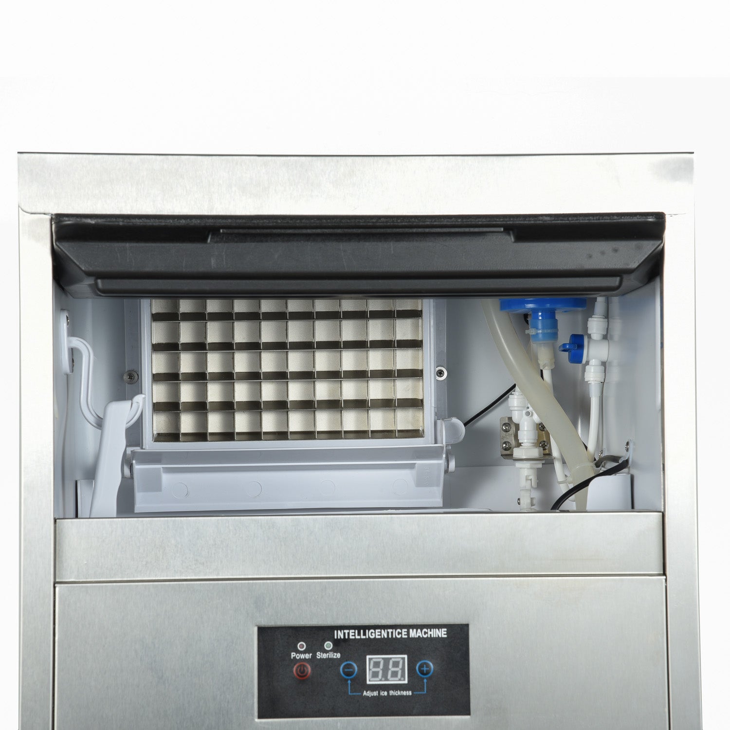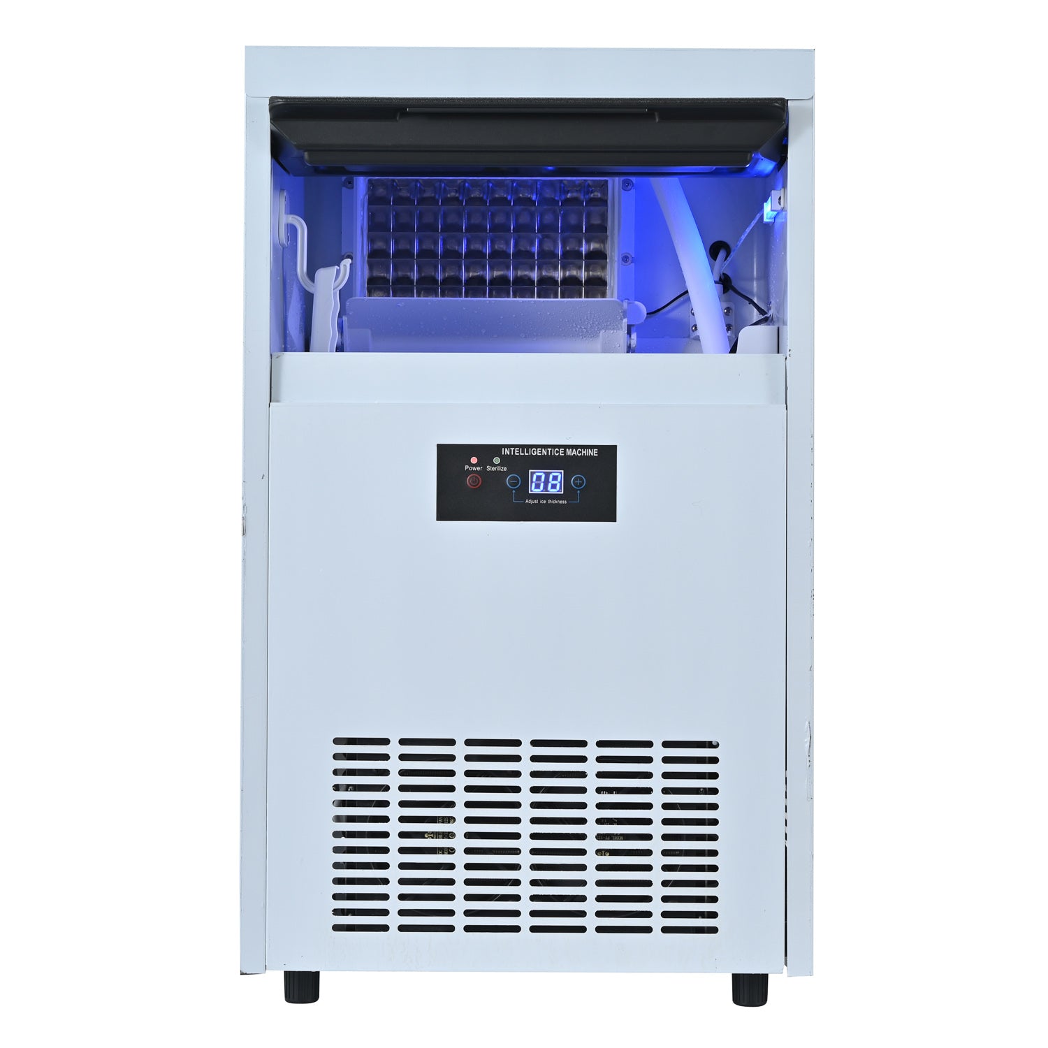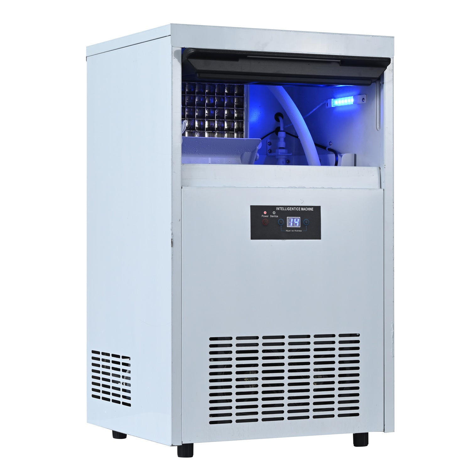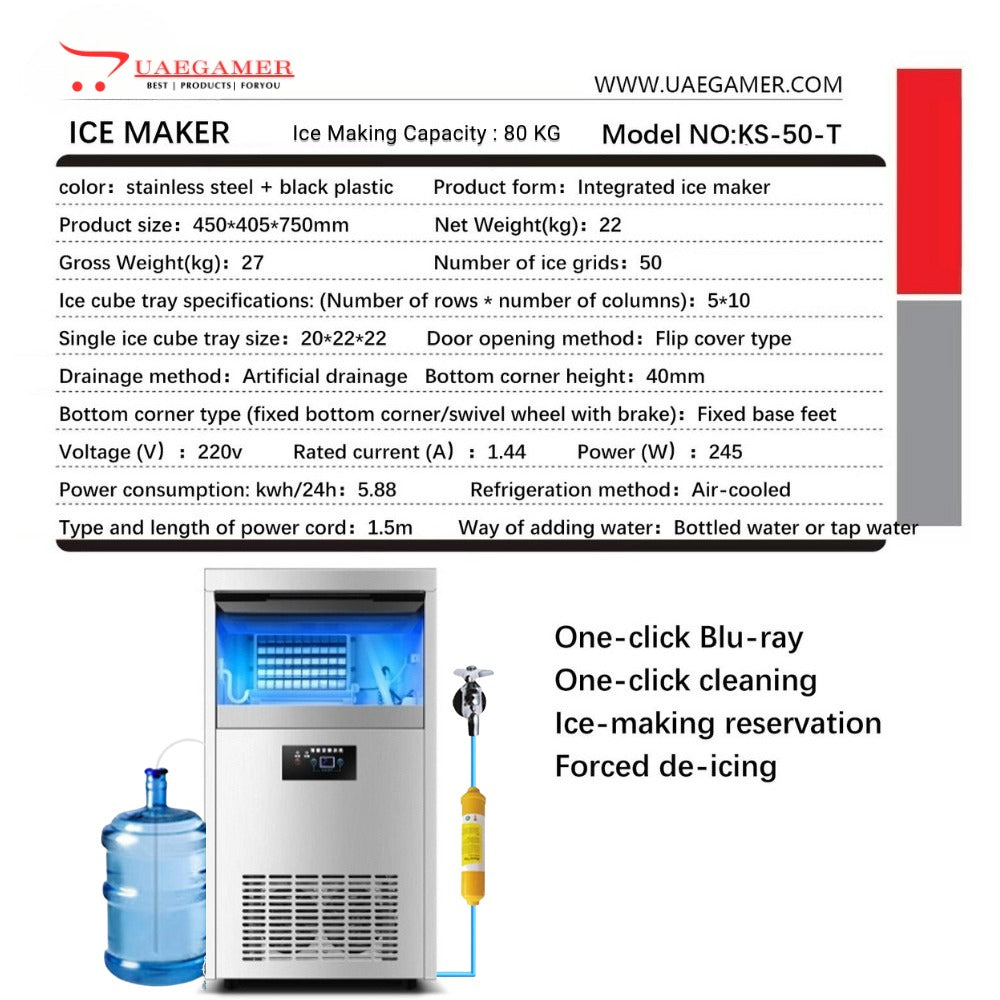 - ICE MAKER- GIVE YOU THE BEST ICE - Are you still worried about not making enough ice? Commercial freestanding ice maker design helps you solve your problem. Commercial ice maker machine can produce 70-80KGS of ice per day and comes with a storage container for 12kgs of ice.
