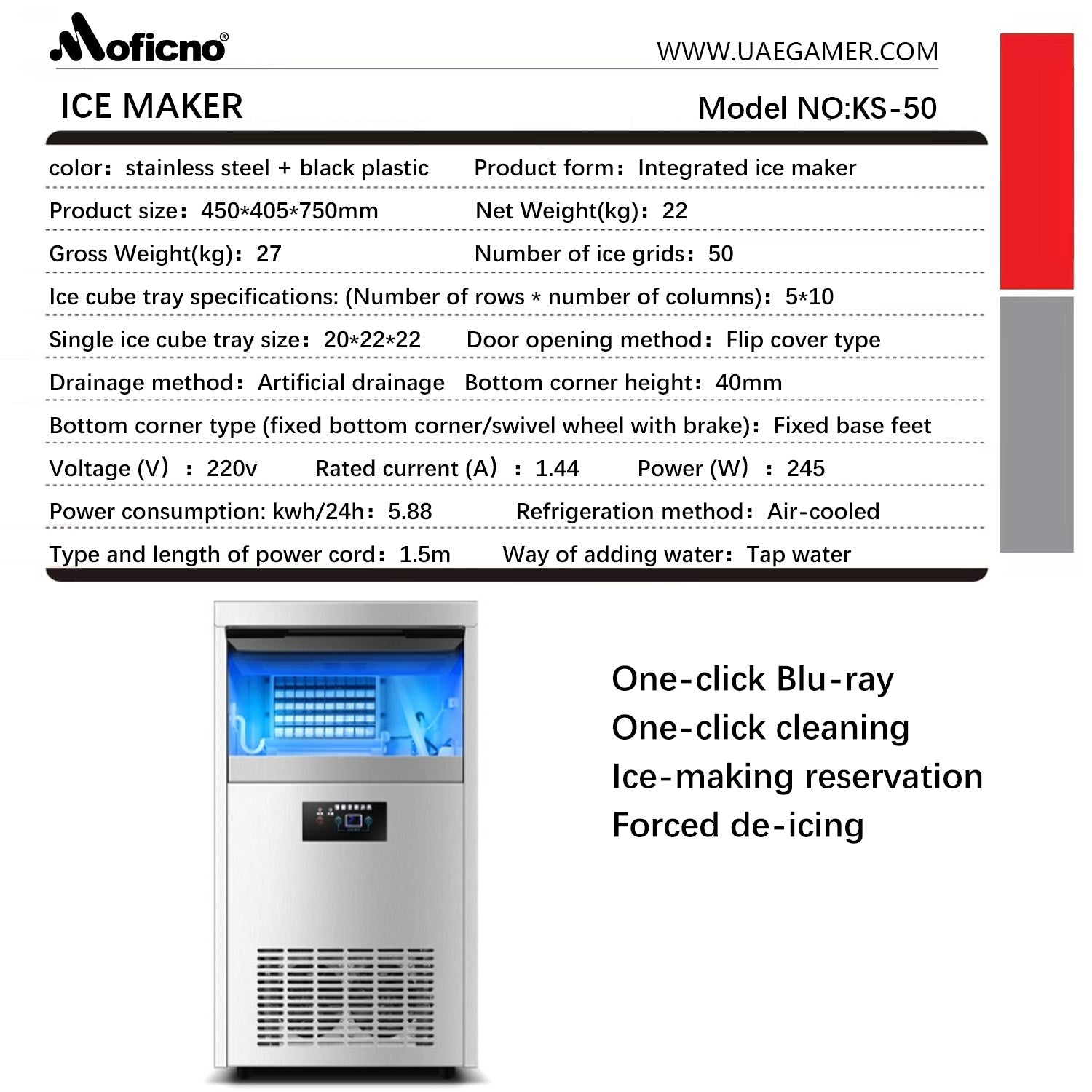 Ice cube tray specifications: (Number of rows * number of columns):5*10