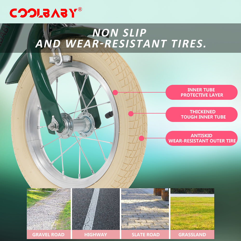 - Triangle stabilizing auxiliary wheel to prevent children from tumbling and falling while riding.