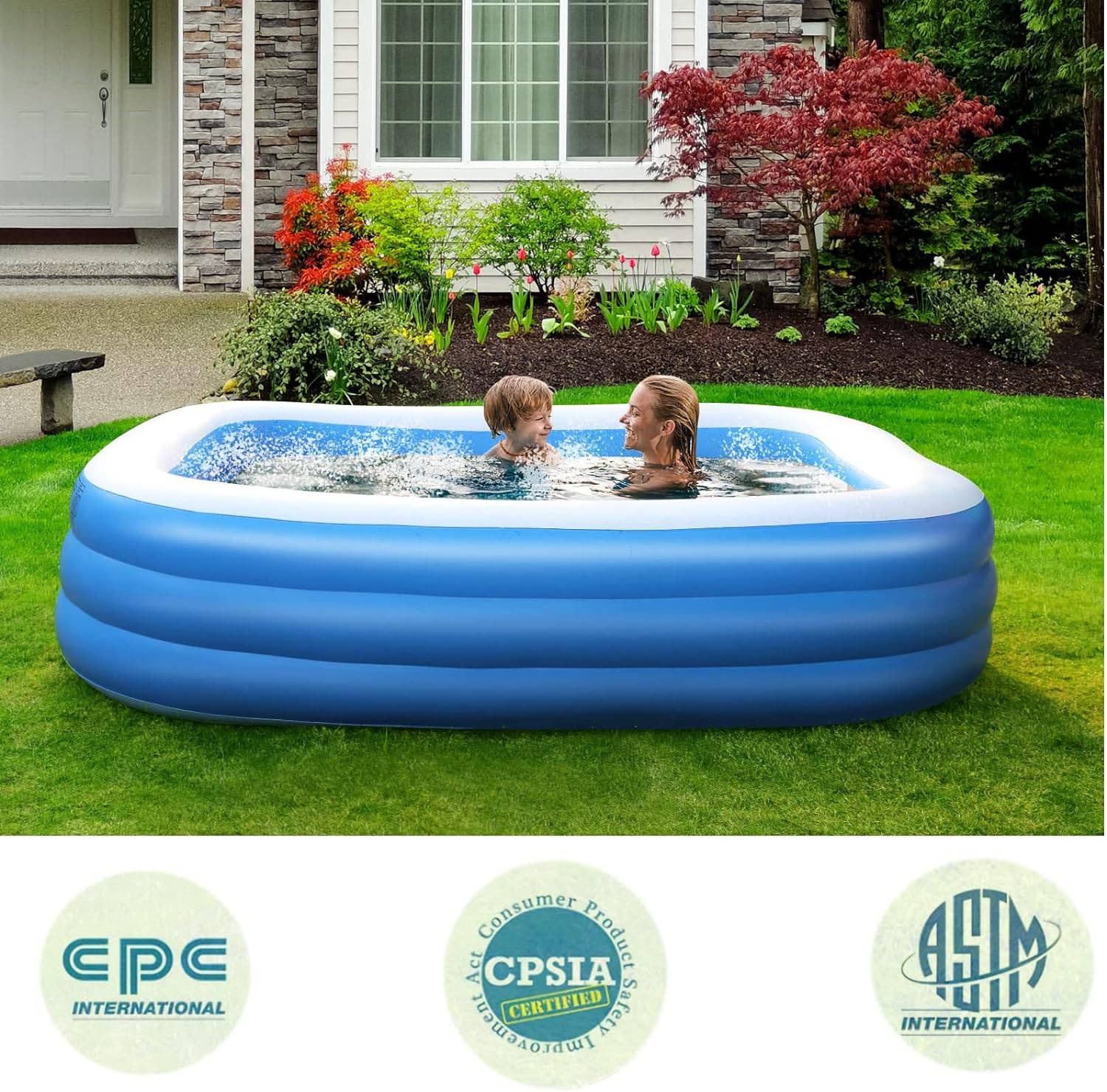 Durable Construction: Double the thickness of most pools on the market, this 0.4mm PVC material ensures durability, resistance to punctures, and effective insulation against ground cold, maintaining a comfortable water temperature.