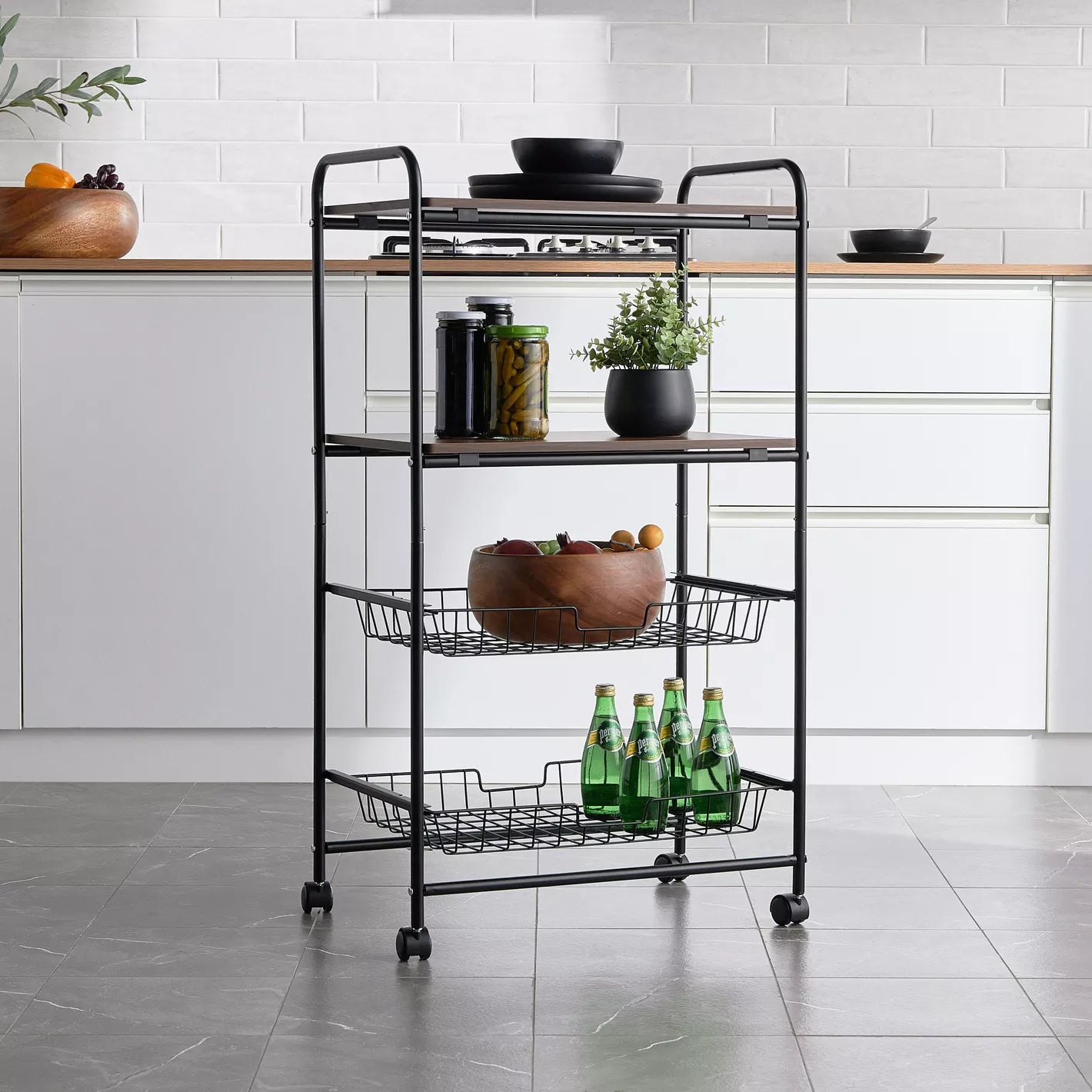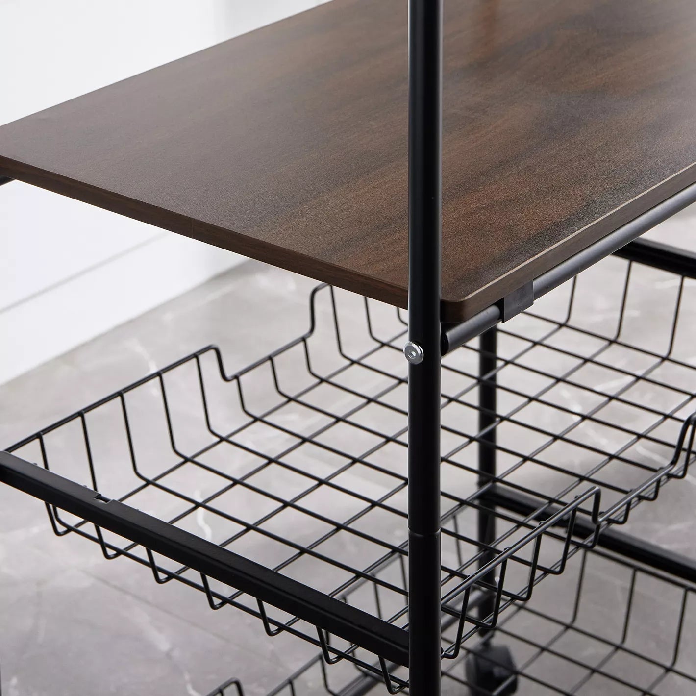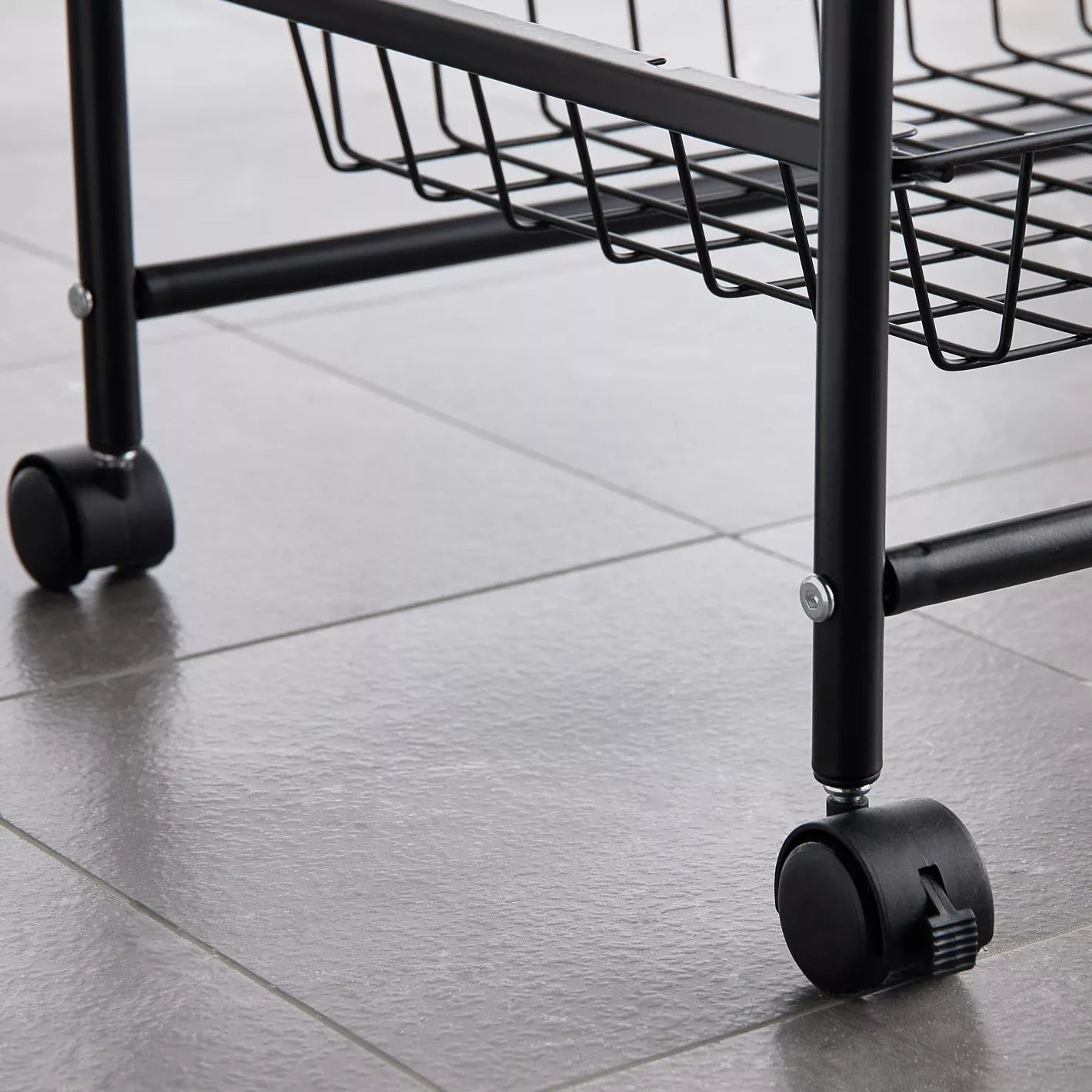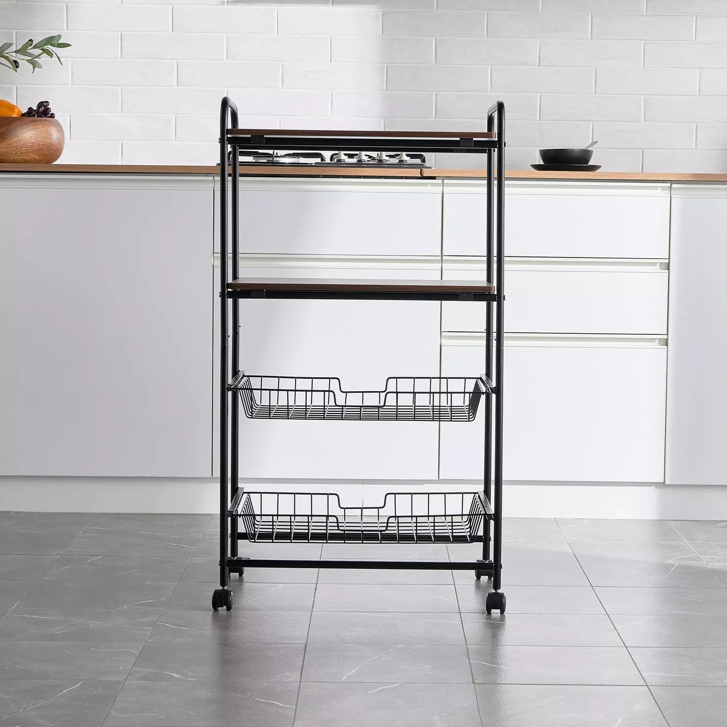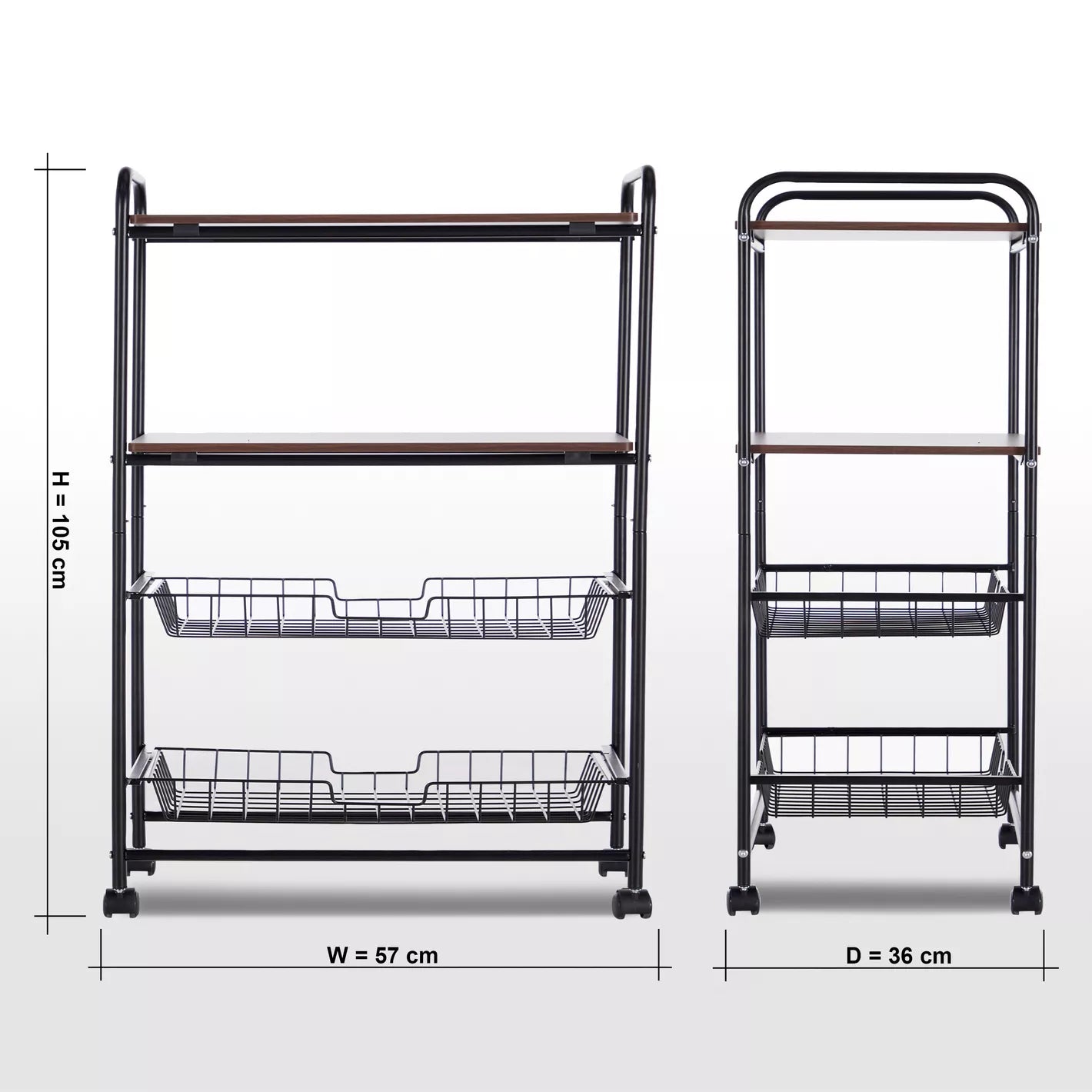 - Design: Four-tier trolley with two shelves and two mesh baskets for easy access to frequently used items