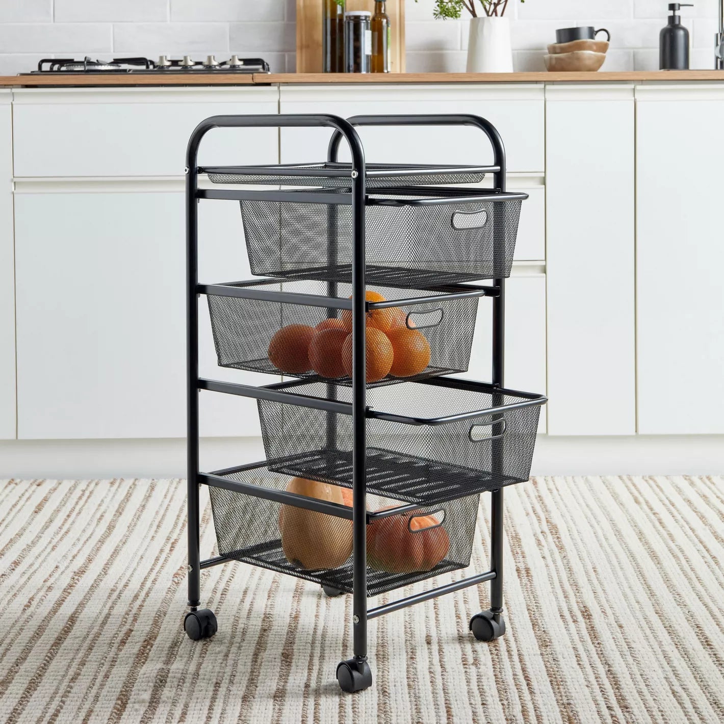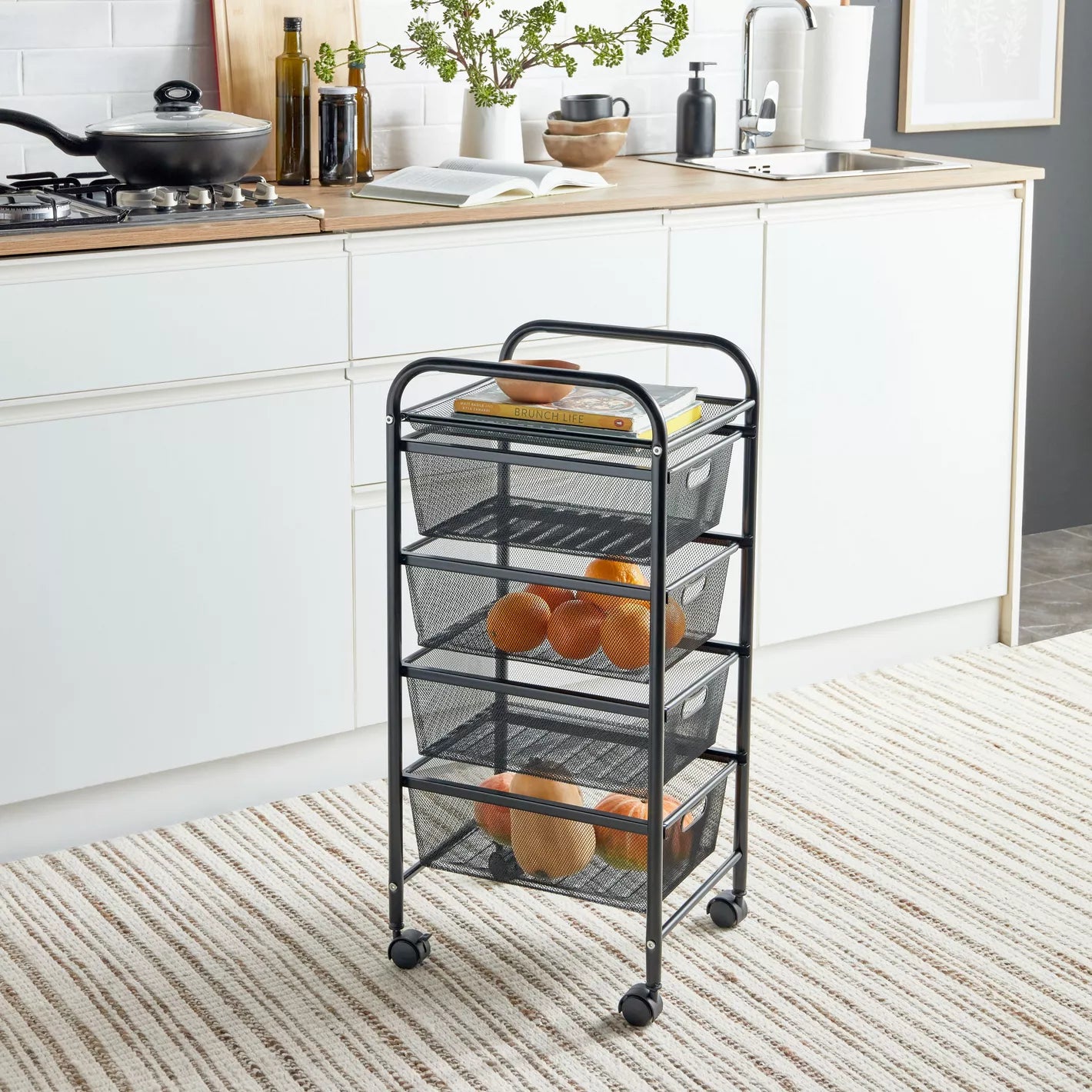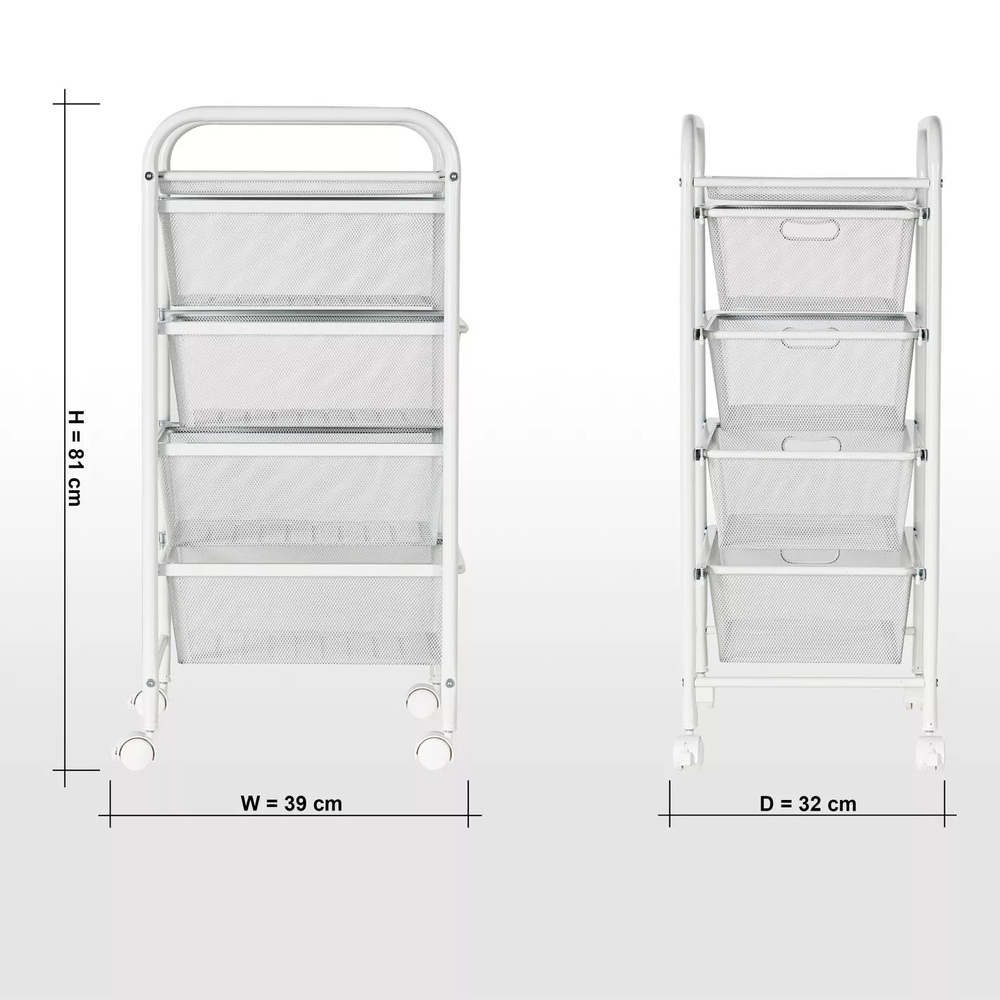 - Design: Five-tier trolley with four spacious mesh drawers for organized and accessible storage