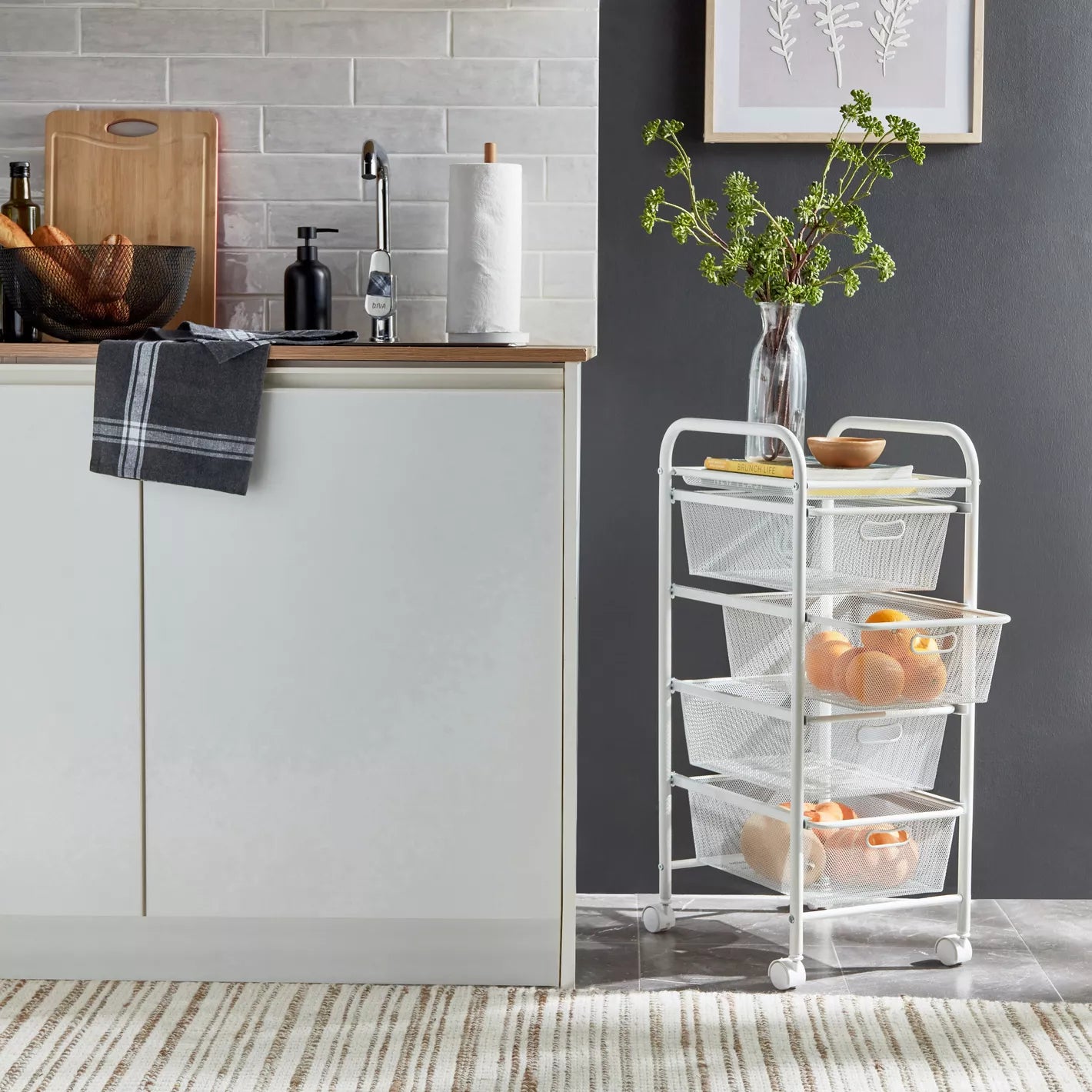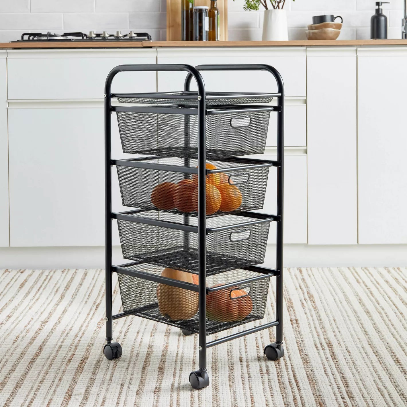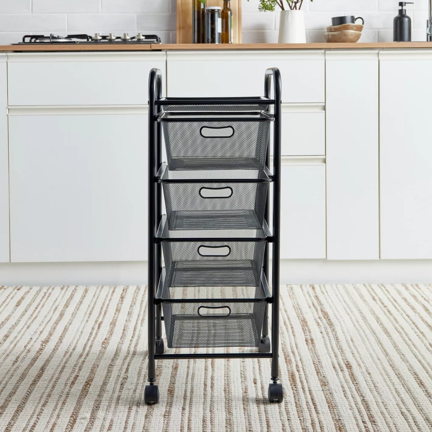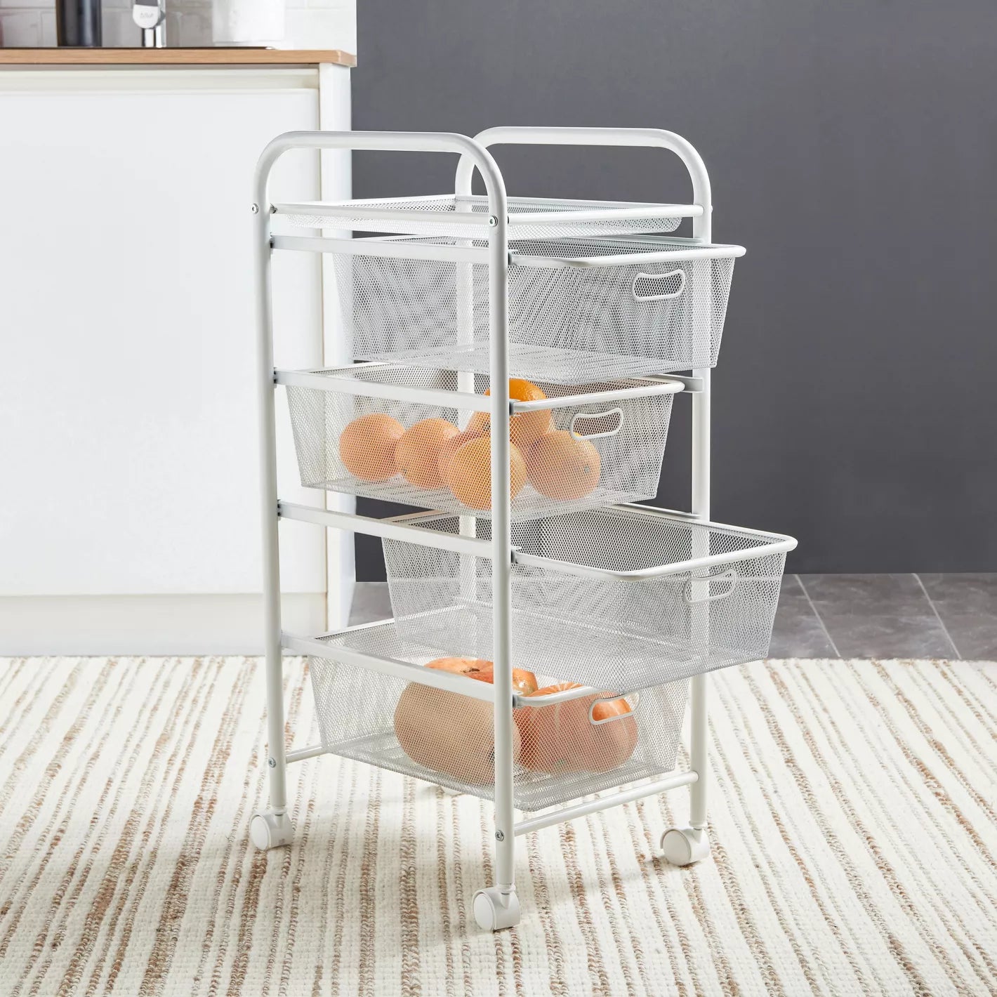 - Design: Five-tier trolley with four spacious mesh drawers for organized and accessible storage