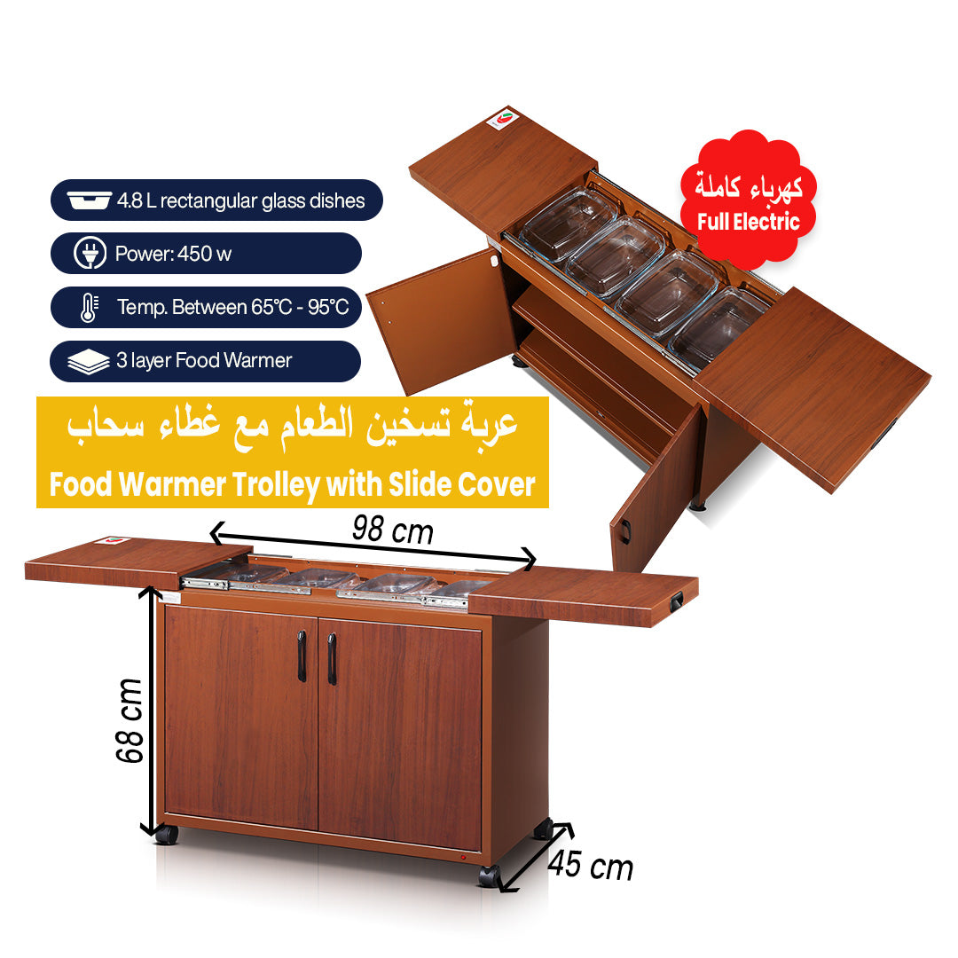 COOLBABY 3-Layer Food Warmer Trolley with Slide Cover - 4.8L Rectangular Glass Dishes - COOLBABY