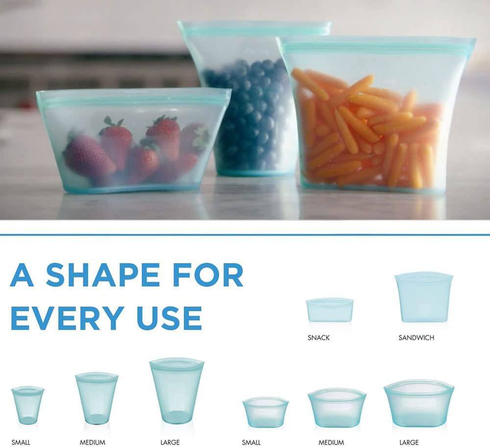 - Designed for easy use and cleaning: Single-piece construction with no glue or plastic sliders, is the most durable and easy-to-use reusable container. The tops stay open and zippers do not overlap in the corners like normal zippers making it super easy to clean. Thick strong silicone will not tear or break keeping food fresh. No more lids!