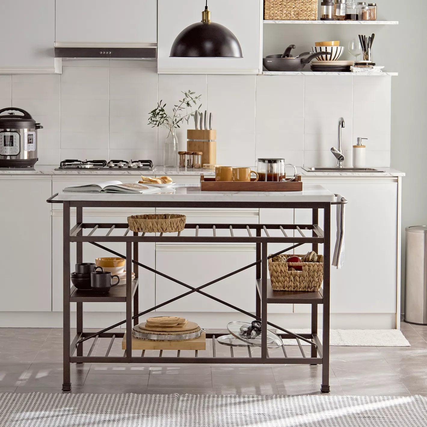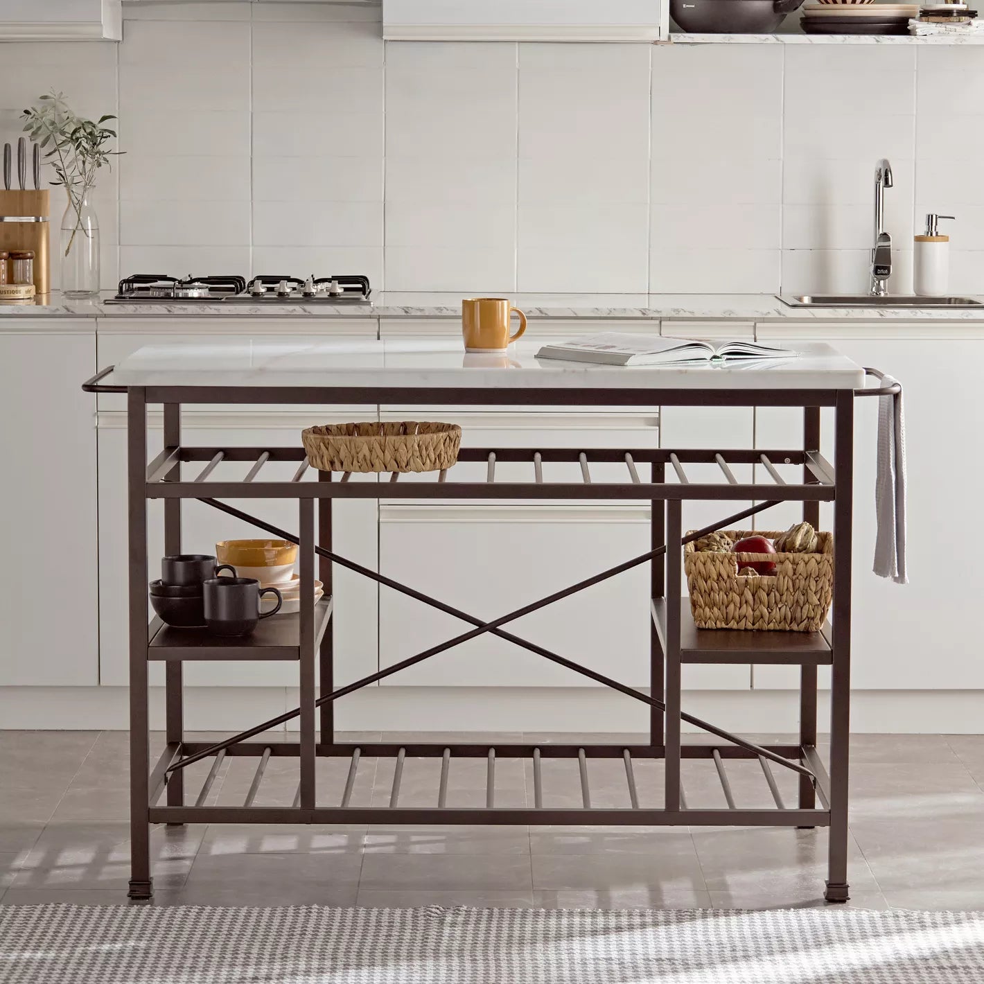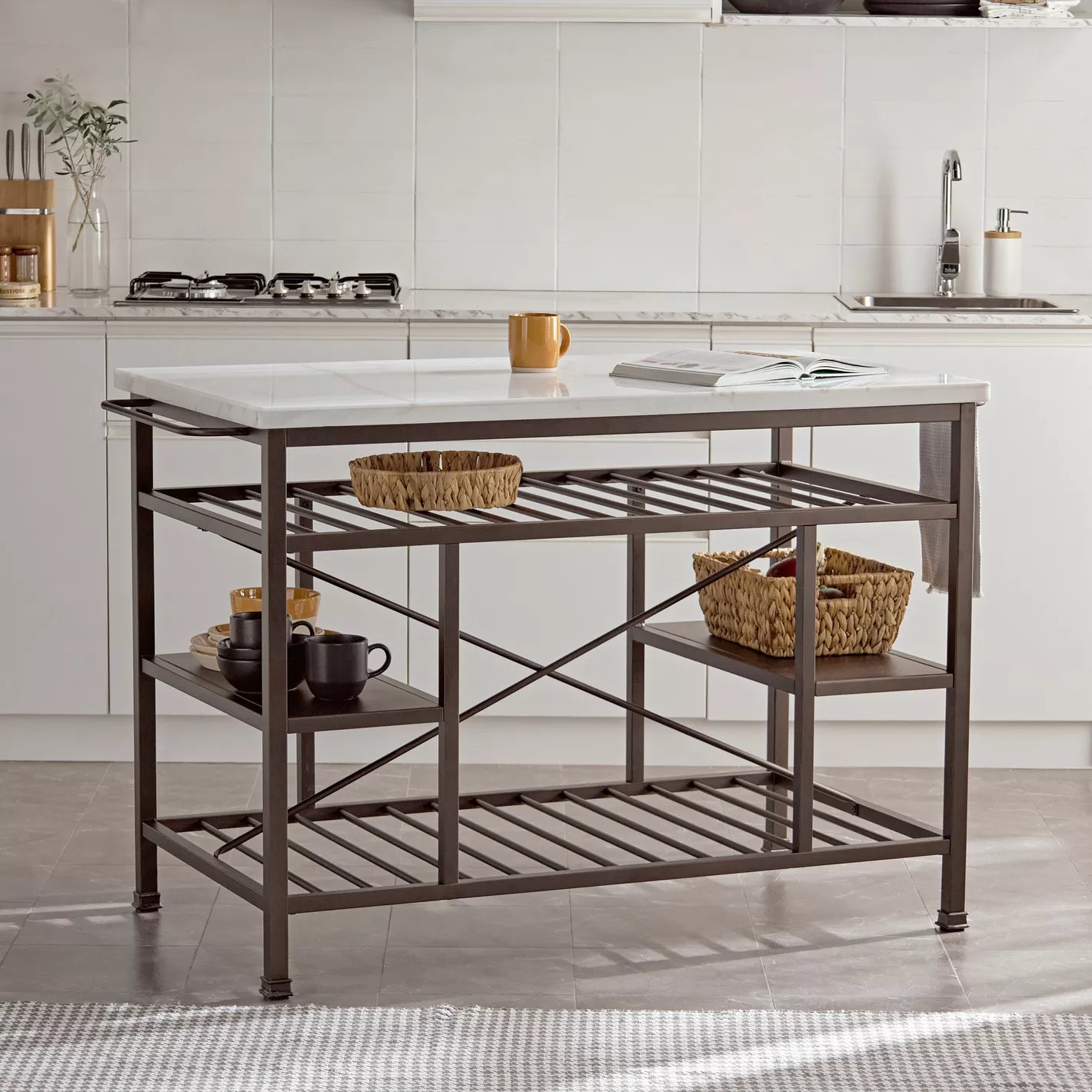 - Storage: Features a shelf storage system, offering practical space for kitchen essentials.