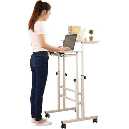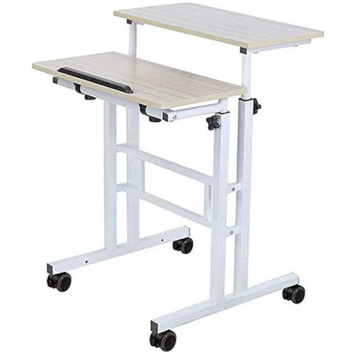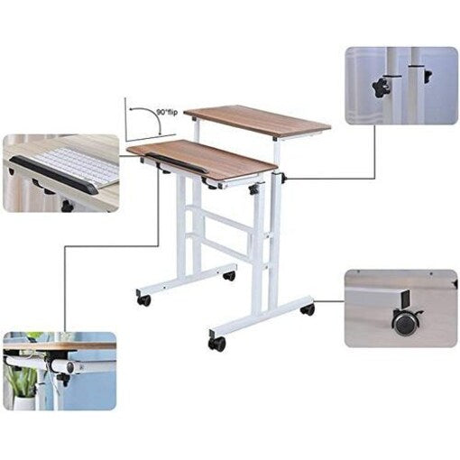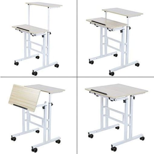 - Designed with four wheels, this desk offers unparalleled mobility, effortlessly rolling around your home or office space.