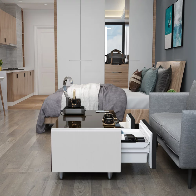 - Functionality: All-in-one solution combining a refrigerator, wireless charger, and storage