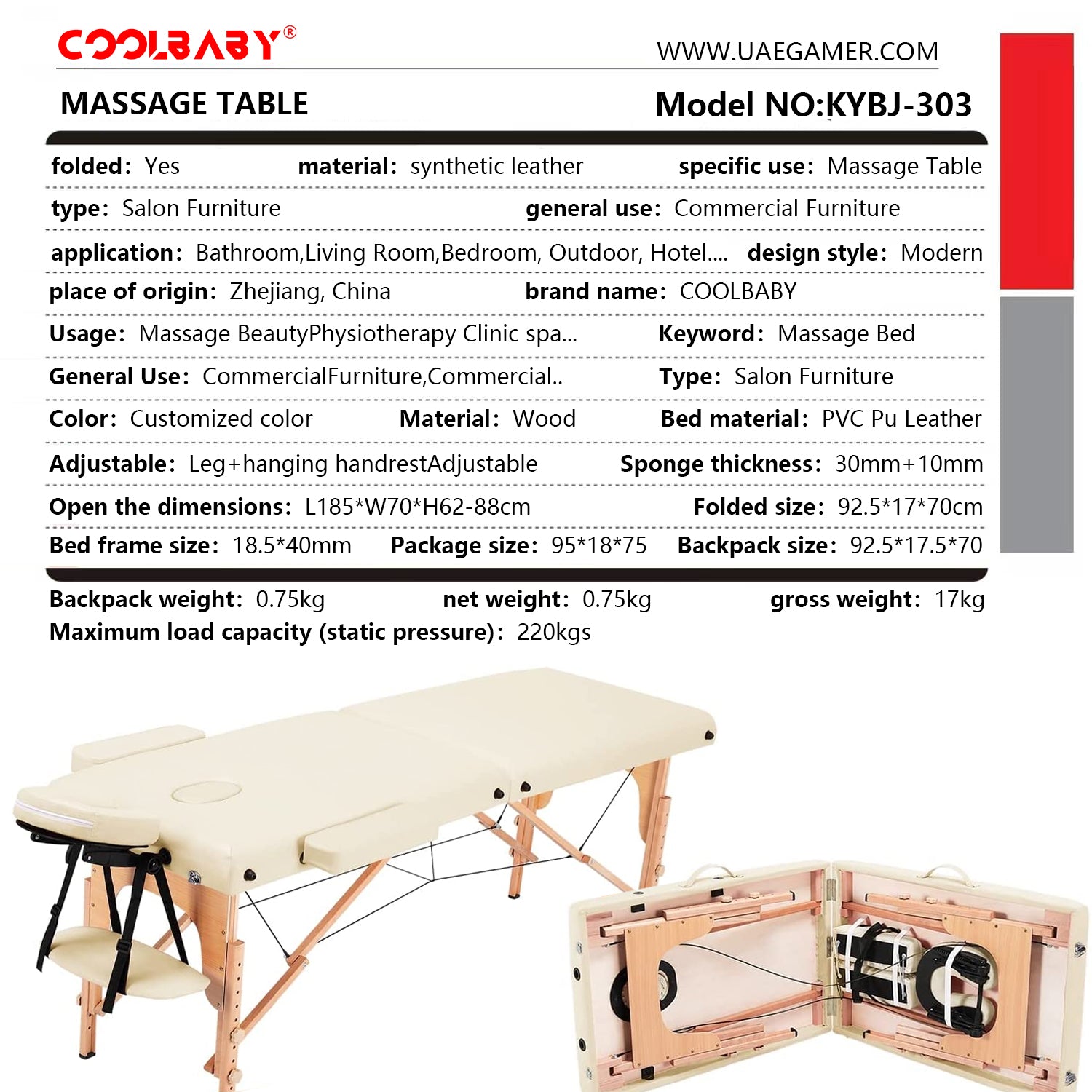 COOLBABY KYBJ-303 Portable Fitness Massage Table - Professional Adjustable Folding Bed for Ultimate Relaxation - COOLBABY