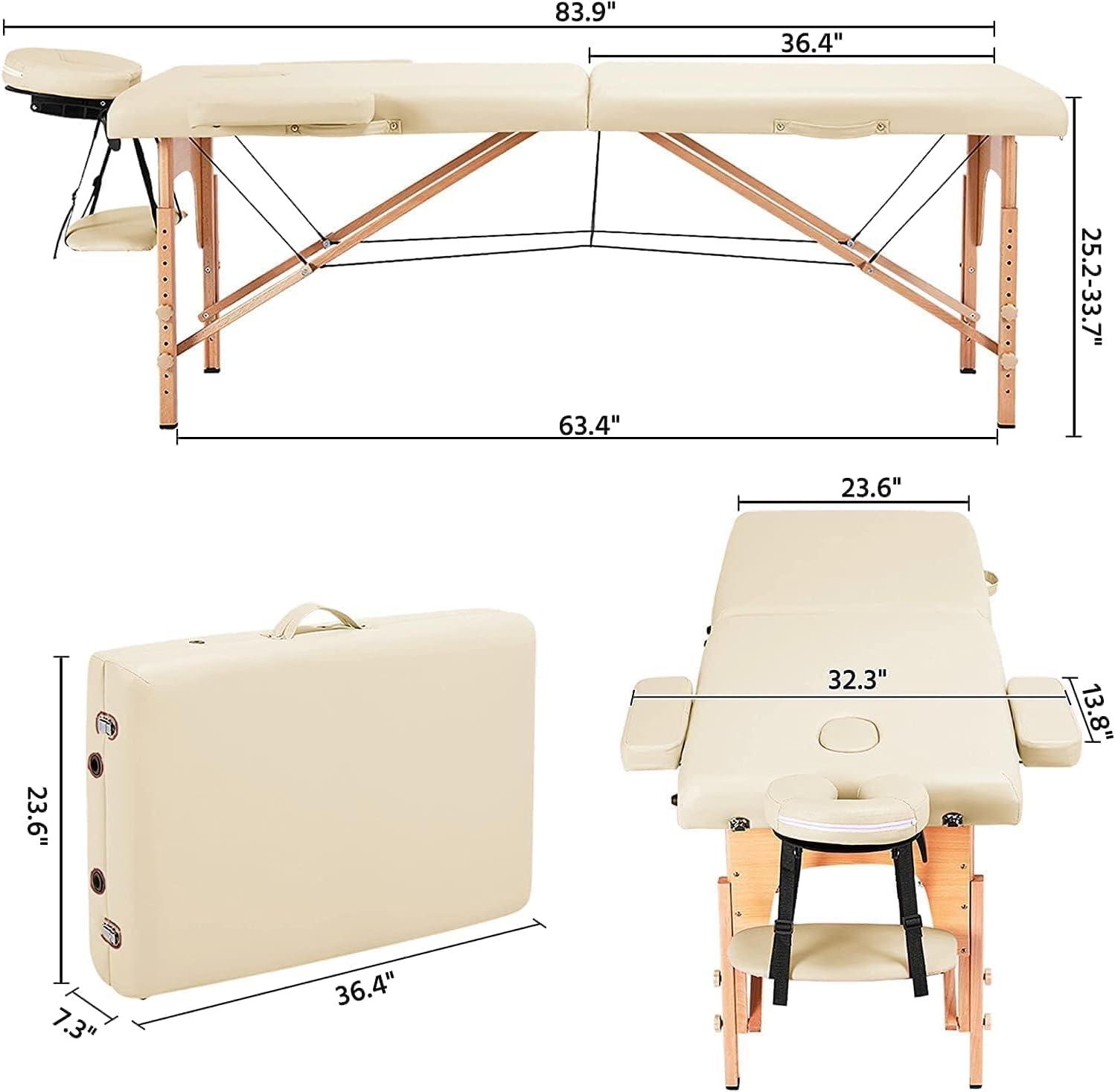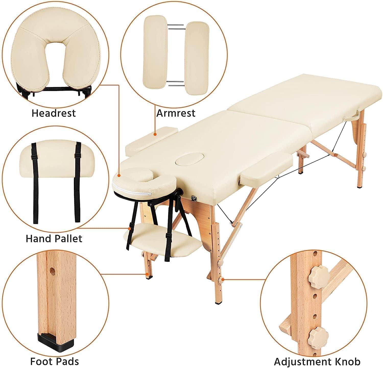 COOLBABY KYBJ-303 Portable Fitness Massage Table Professional Adjustable Folding Bed With 3 Sections Wooden Frame Ergonomic Headrest With Carrying Bag - CoolBabyMass