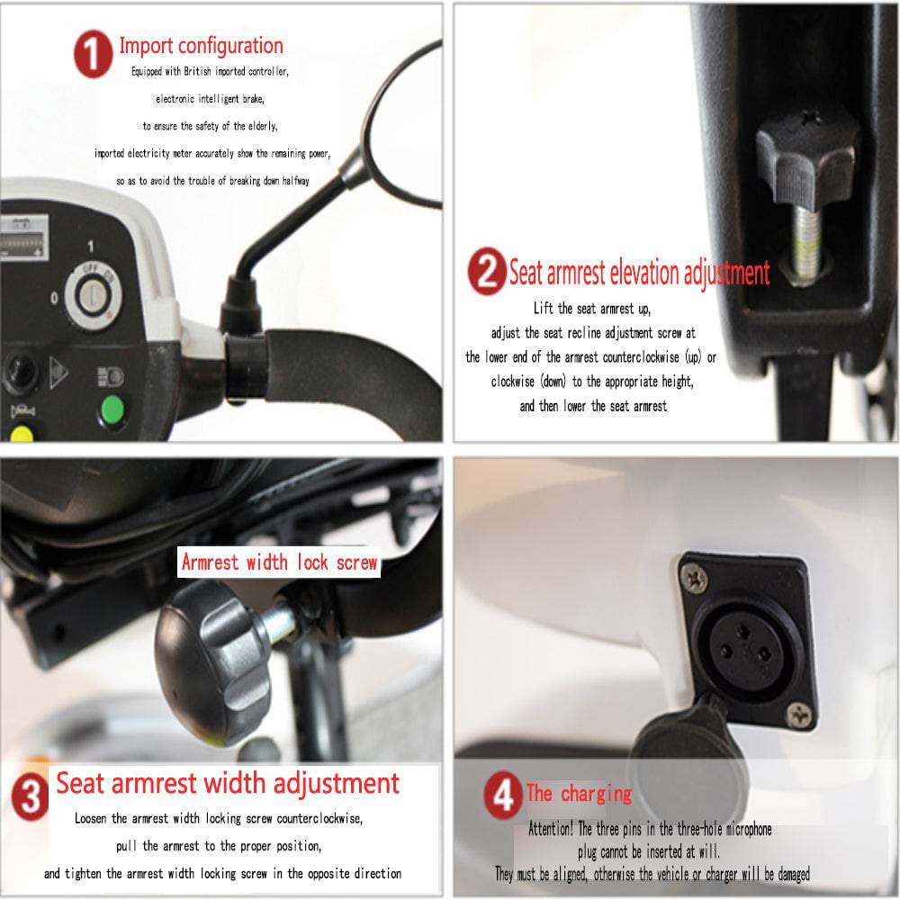 Equipped with British-imported controller and electronic intelligent brake, to ensure the safety of the elderly, imported electricity meter accurately shows the remaining power so as to avoid the trouble of breaking down halfway