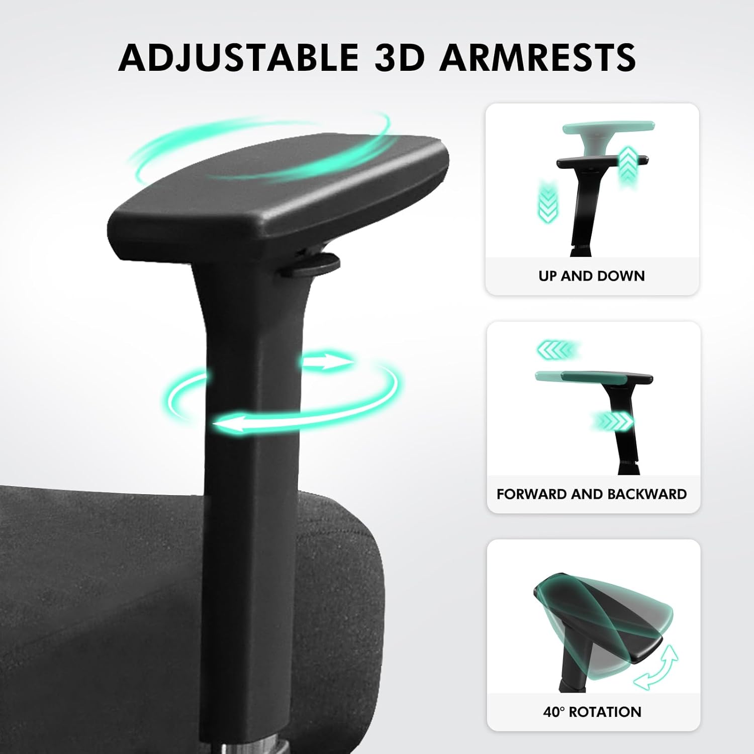 | Armrests | 3D adjustable (height, angle, and depth) |