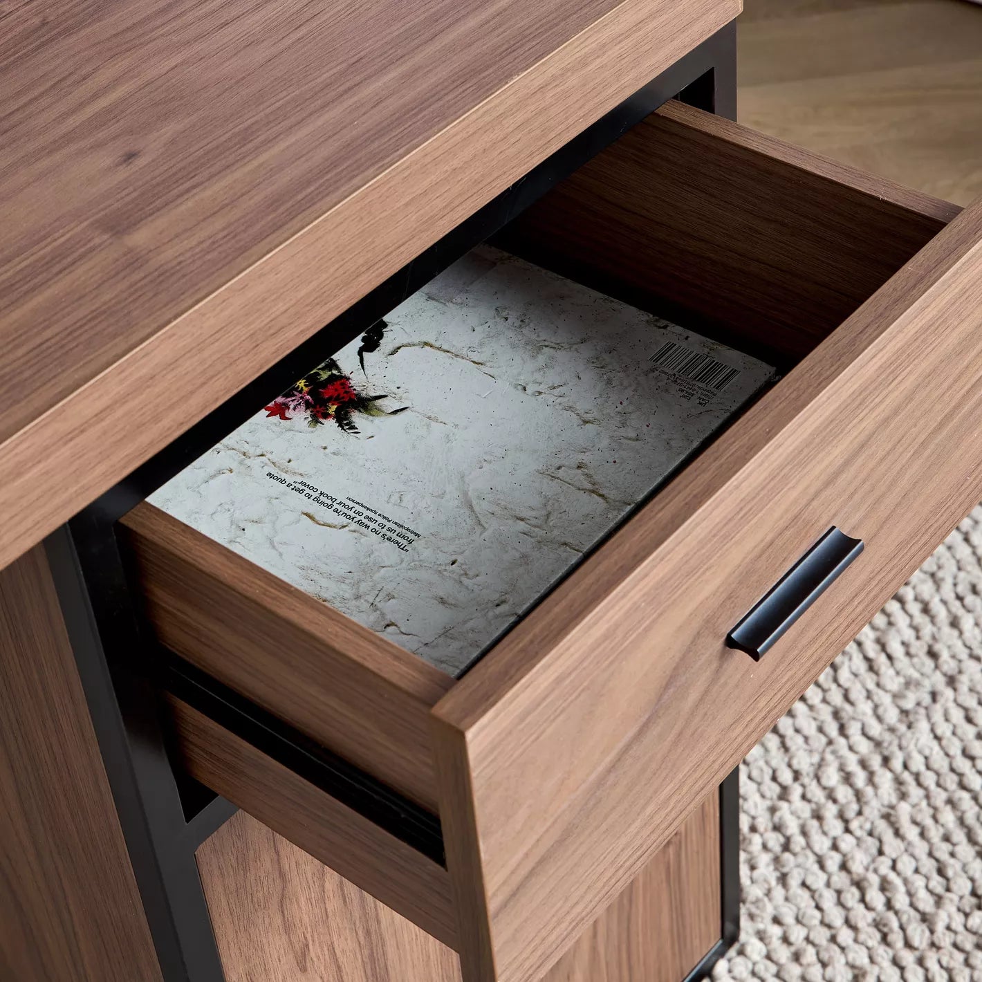 - Crafted from high-quality engineered wood, featuring a sleek melamine finish for a sophisticated urban loft style.