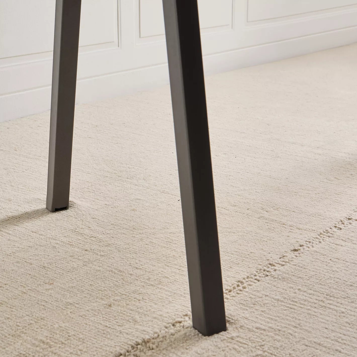- Features a sturdy metal base with a matching painted finish and electroplated metal handles for a fashionable touch.