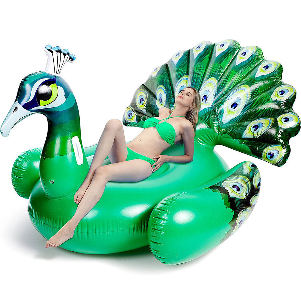 - SPECIAL APPEARANCE. This high-quality inflatable float in a unique peacock design with a HUGE tail will make your pool an irresistible head-turning attraction in the neighborhood!
