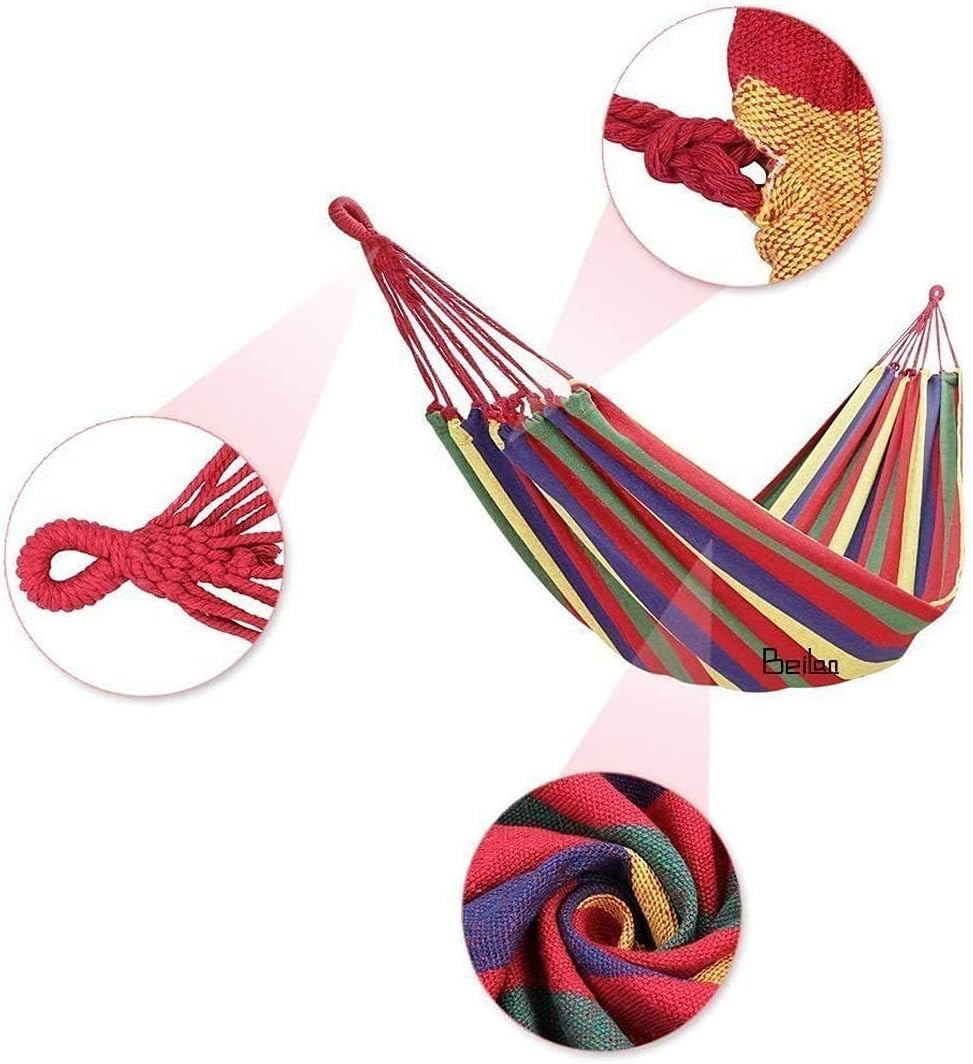 Vibrant Multicolor: Add a splash of style to your outdoor experience. Our hammock boasts a vibrant multicolor design, elevating your relaxation time with a touch of visual appeal.