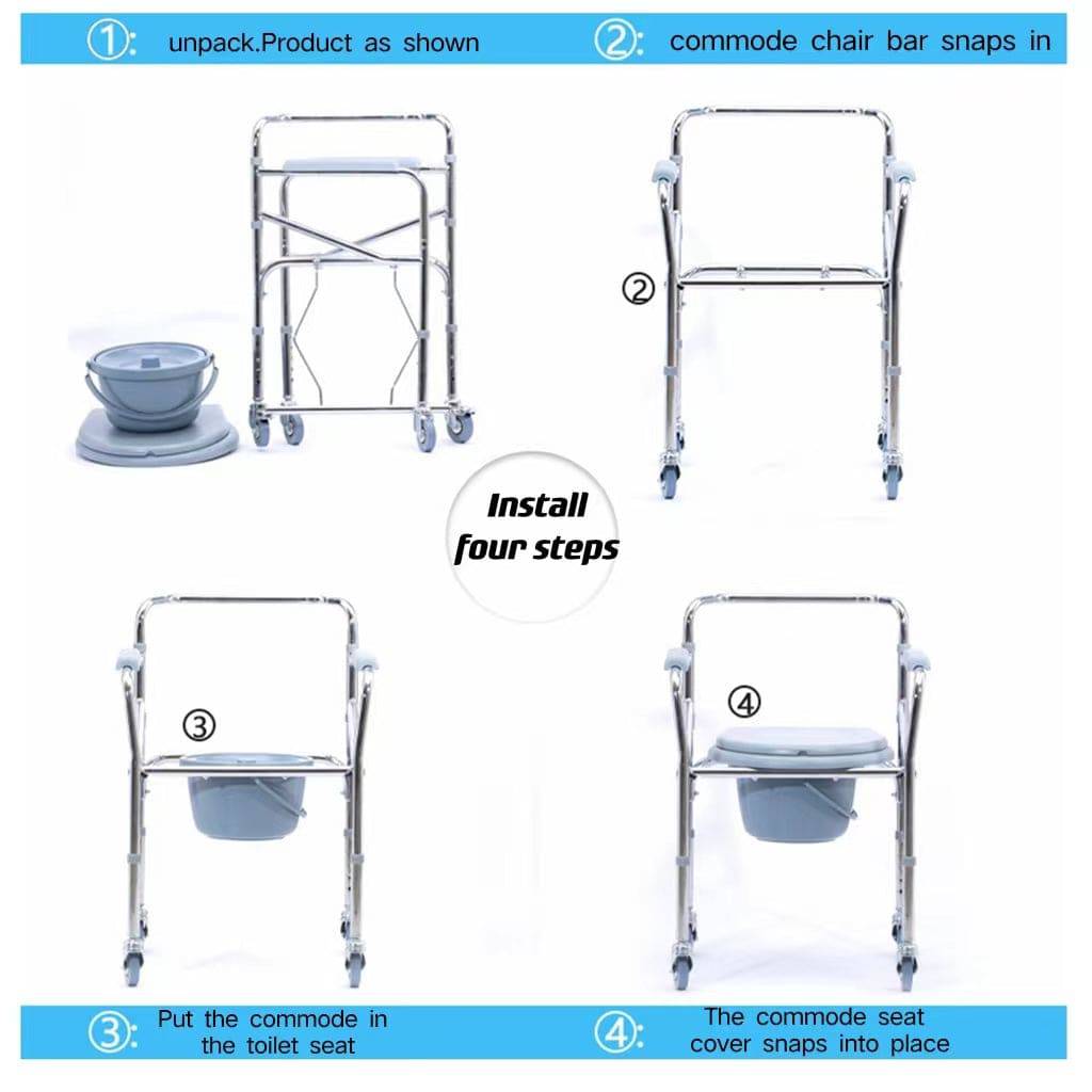 [Material] The mobile toilet is made of thickened steel pipe, which has a higher bearing capacity and a maximum bearing capacity of 150KG, which is firm and stable. The toilet can be folded by pressing the switch, which is convenient for storage and carrying , and the elderly can easily lift it, which is comfortable and convenient.