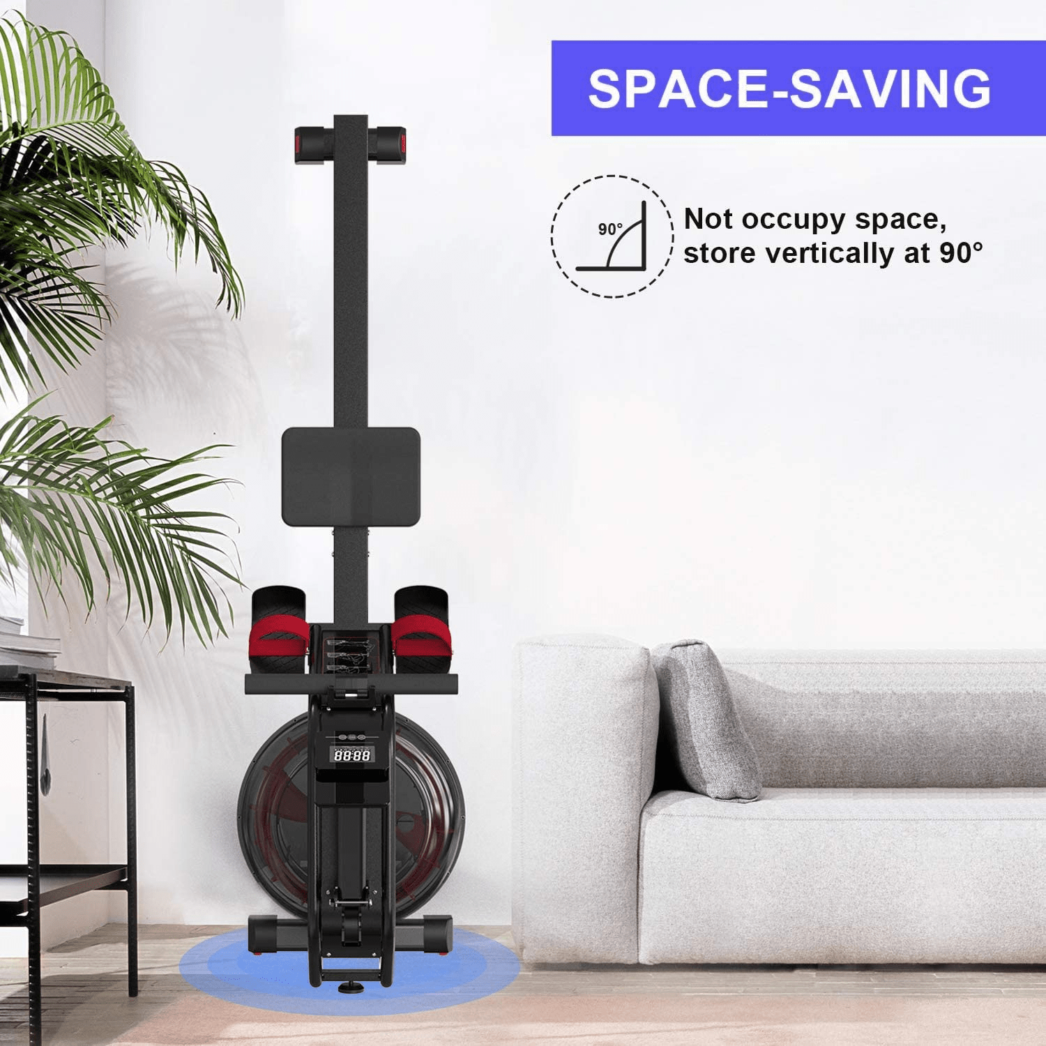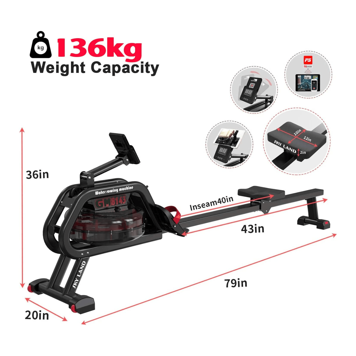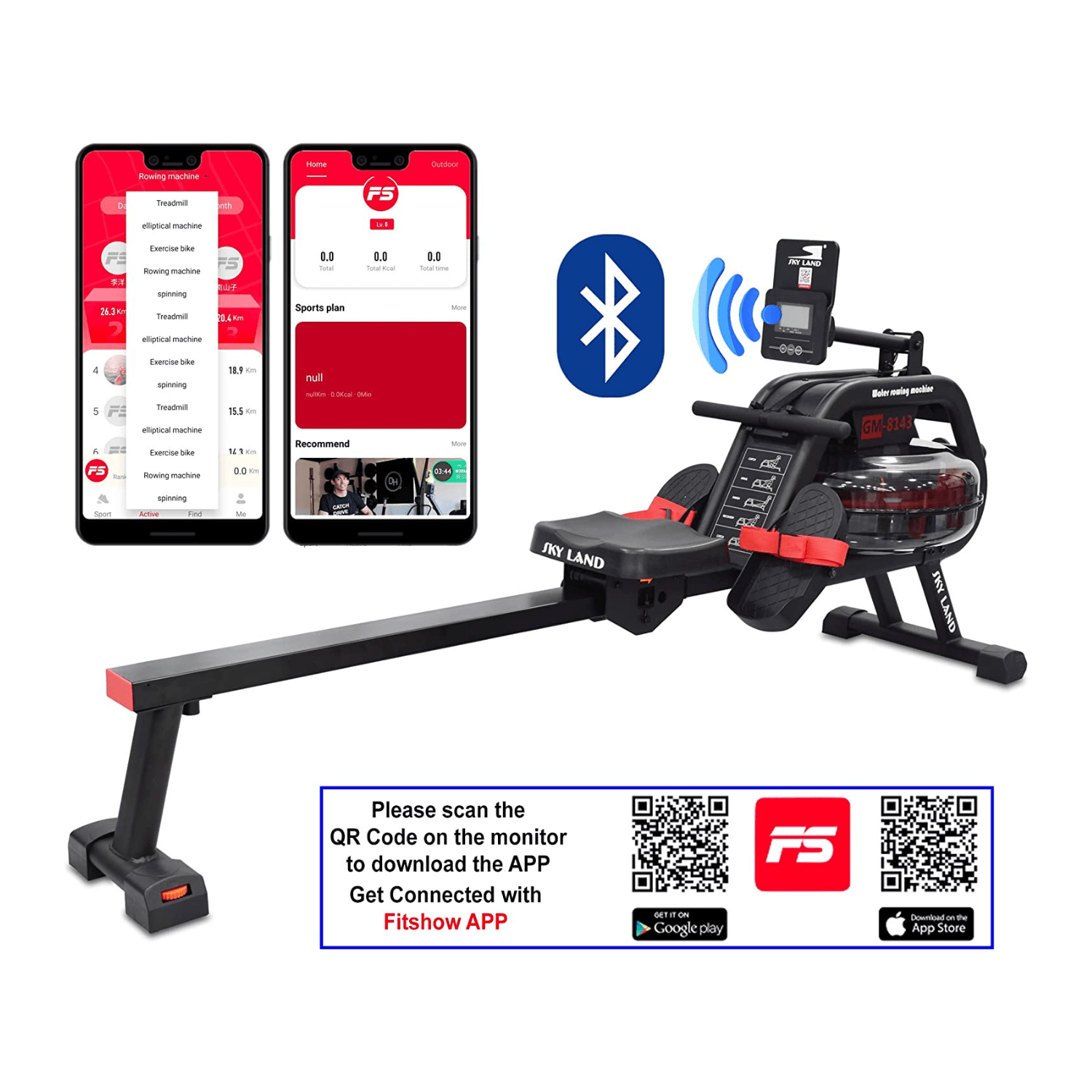 - SKY LAND Water Rowing Machine: Enjoy a smooth and quiet workout with Bluetooth APP FIT SHOW support.