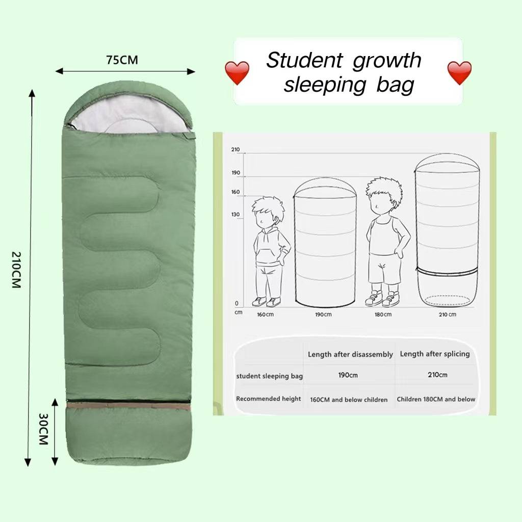 Splicable Design: Non-splicing size (160+30CM75CM) for children under 160CM and splicing size (190+30CMCM) for children under 180CM and adults. One high-quality sleeping bag for children's growth.