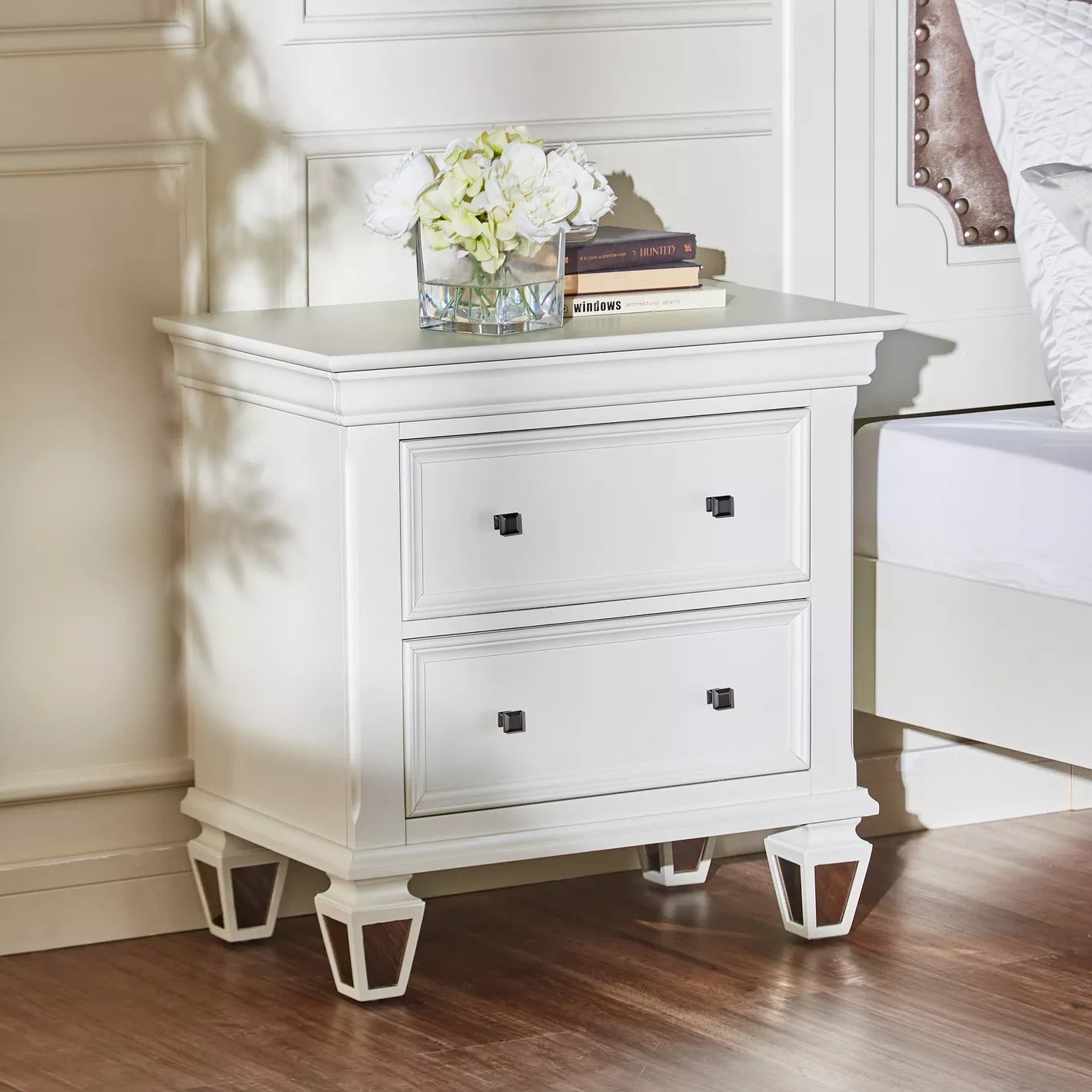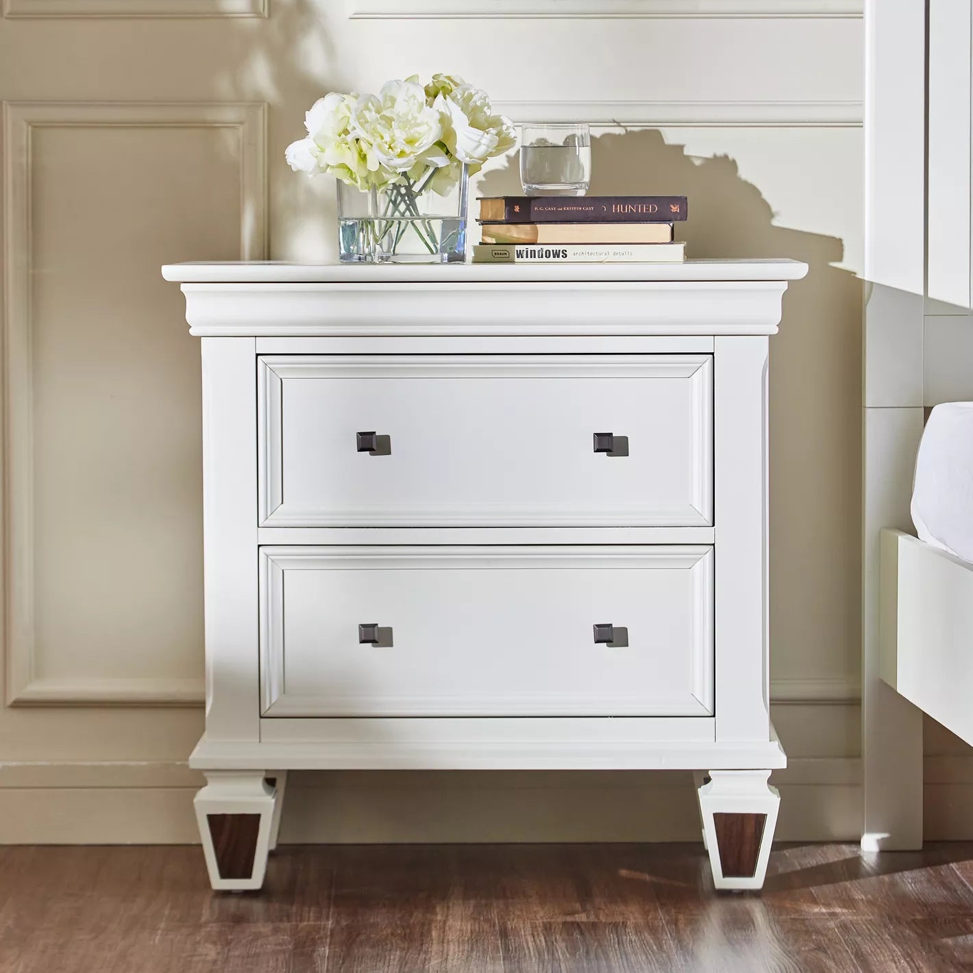 Solid Wood Nightstand 2 Drawers For Storage For Bedroom 43.4 x 71 x 70.2 CM
