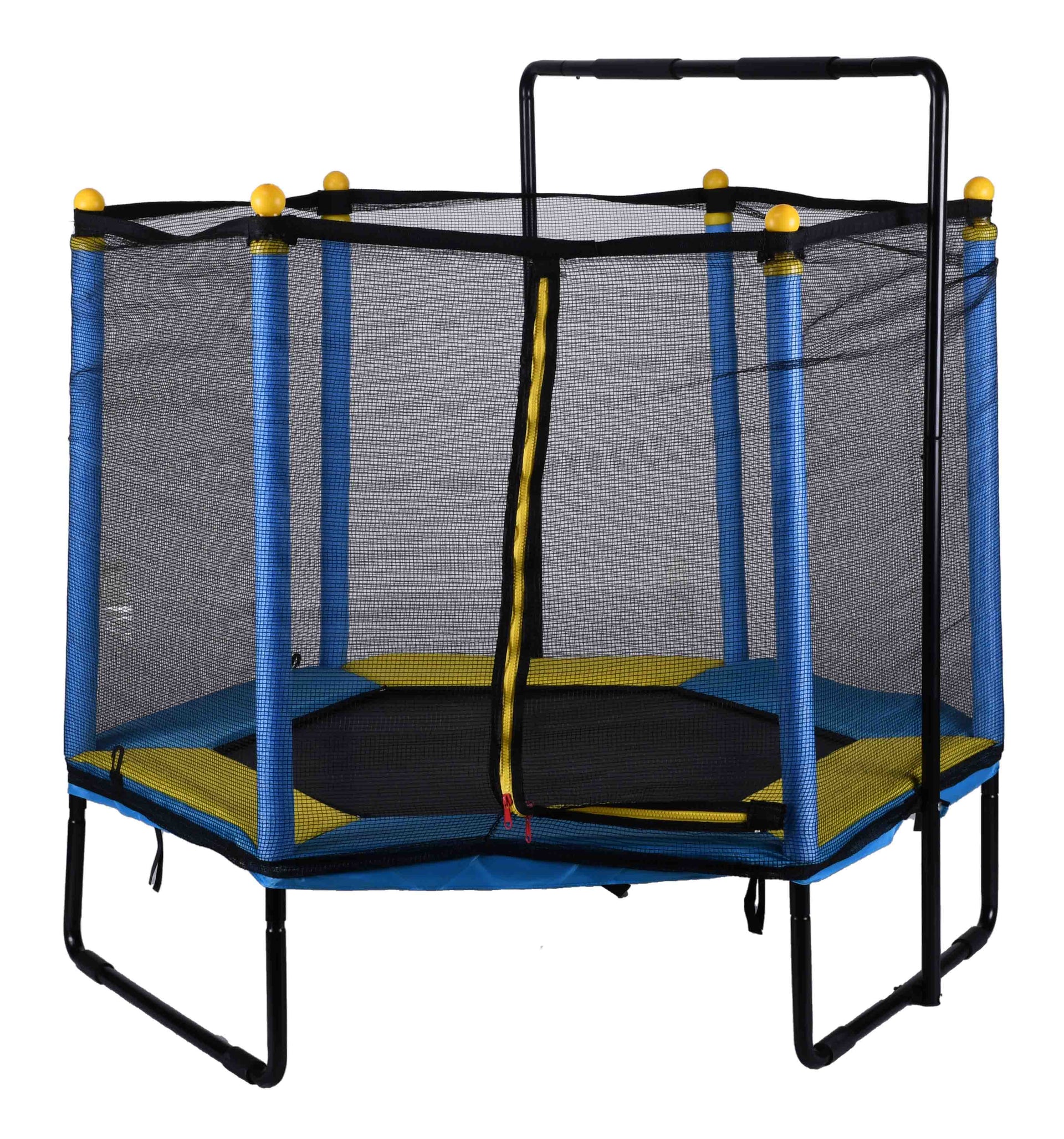 Heavy Loading Capacity: 55" trampoline with safety enclosure, featuring covered springs and a thick pad to prevent hands or feet from getting trapped. Offers a safe and stable play space for kids.